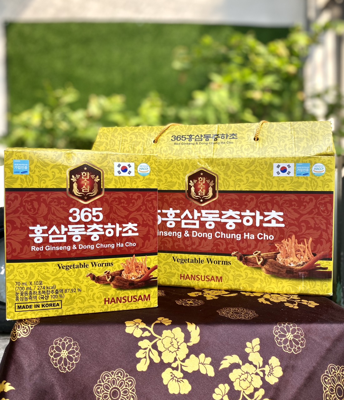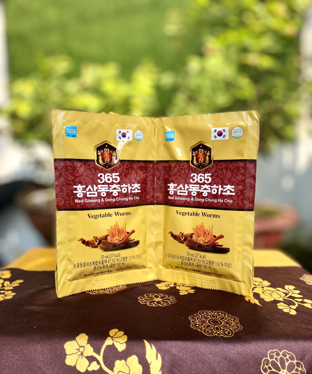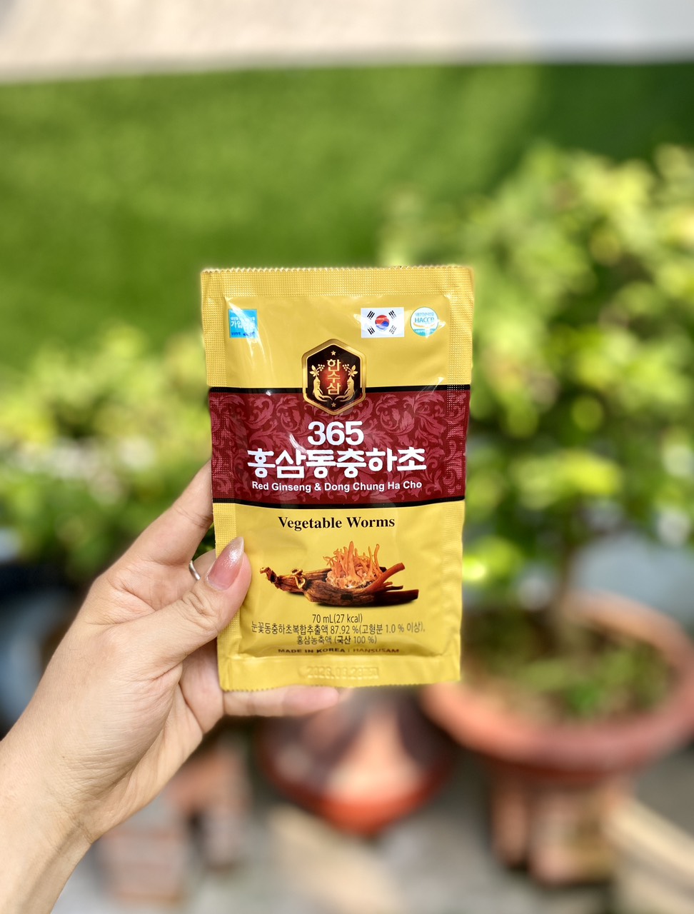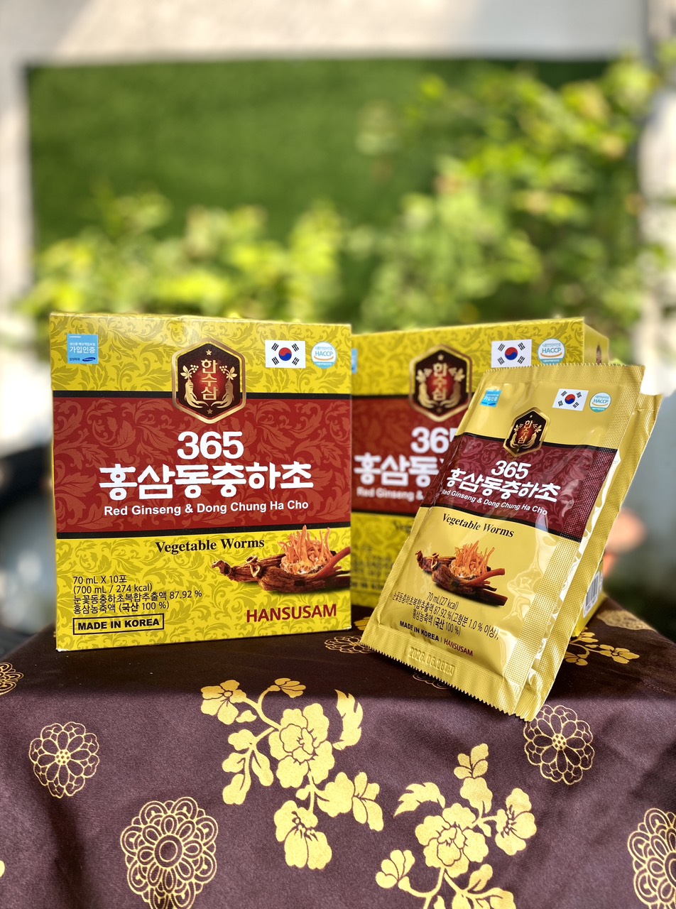 Mua tại TiktokSIÊU PHẨM BỔI BỔ SỨC KHỎE HÀNG HÀN QUỐC VỪA CẬP BẾN ĐÂY Ạ ️ ️ NƯỚC SÂM ĐÔNG TRÙNG HẠ THẢO 365 HỘP 20 GÓI Sự kết hợp giữa Hồng sâm Hàn Quốc 6 năm tuổi và chiết xuất Đông trùng hạ thảo mang lại cho bạn một thức uống giúp bồi bổ sức khỏe, giảm stress cho mọi lứa tuổi. Xuất xứ: Hàn Quốc Đóng gói: 70ml x 20gói/hộp, 5 hộp/thùng Thành phần: chiết xuất phức hợp hoa tuyết Đông trùng hạ thảo [ Chiết xuất phức hợp hoa tuyết Đông trùng hạ thảo, hàm lượng chất rắn trên 1% ( trong nước), 30%], Chiết xuất vỏ quả hồng ( trong nước), chiết xuất táo đỏ ( trong nước), chiết xuất rễ cây sắn rừng, chiết xuất đương quy, chiêt xuất cây hoa chuông, chiết xuất ngải cứu, hoàng kì, nấm phục linh, cam thảo} 87.92%, Fructose lỏng, nước xiro, fructooligosaccharide, cô đặc hồng sâm( trong nước 6 năm tuổi, thành phần hồng sâm 70mg/g, hàm lượng rắn 60%* tỉ lệ phức hợp nguyên liệu: củ hồng sâm 70%, rễ hồng sâm 30%) 0.15%. Chúng tôi cam kết sản phẩm 100% từ Hàn Quốc