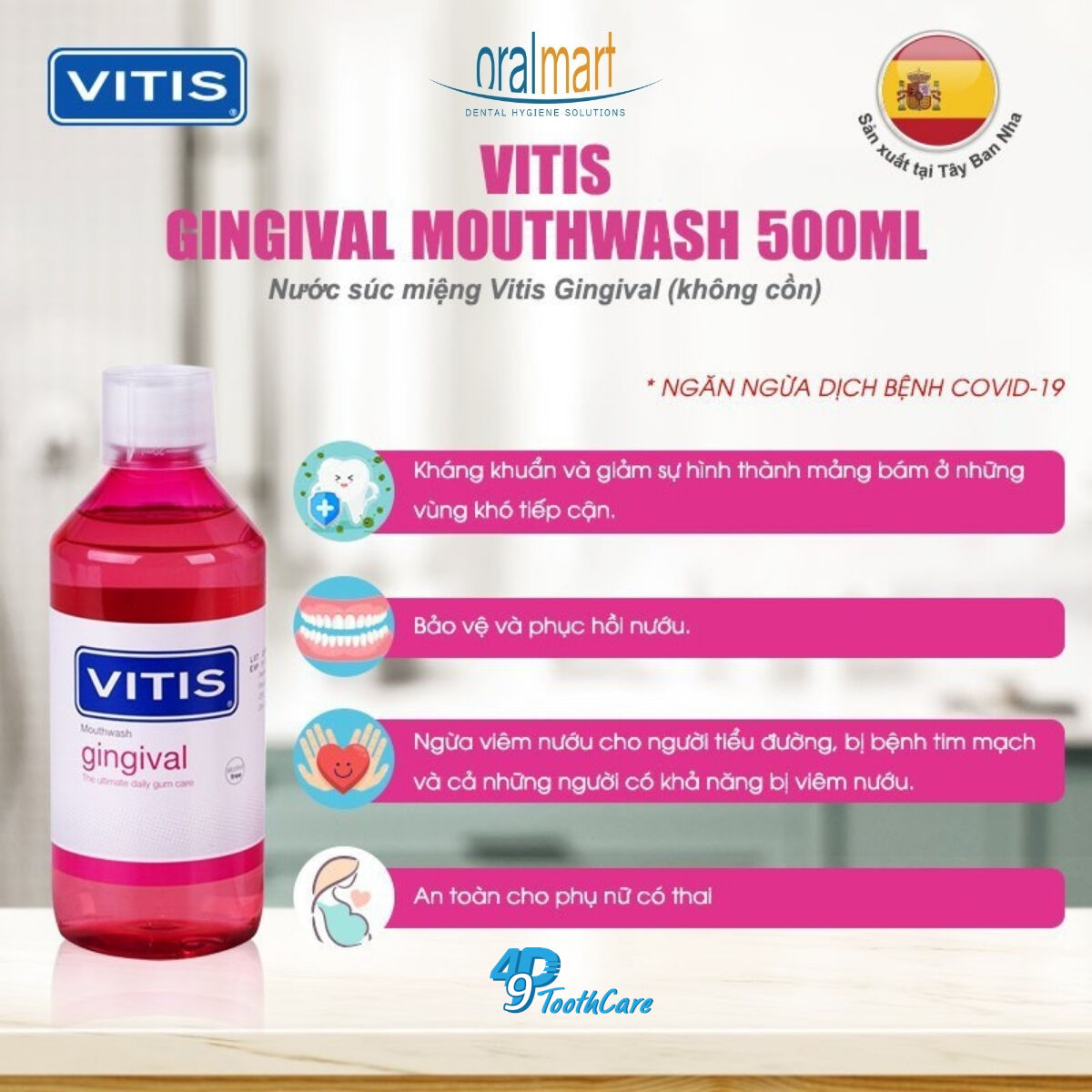 Nước súc miệng ngăn ngừa viêm nha chu, chảy máu nướu cho phụ nữ mang thai | VITIS GINGIVAL CHỈ ĐỊNH - Nước súc miệng VITIS gingival là sản phẩm dùng hàng ngày có công