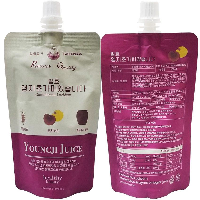 Đây là thức uống được chiết xuất từ nấm linh chi thượng hạng và tinh chất nấm linh chi lên men được ủ bởi 8 loại nguyên liệu xuất xứ Hàn Quốc. Là thức uống sức khỏe chăm sóc sắc đẹp từ bên trong với nấm linh chi có vị đắng dịu và có hiệu quả tối đa nhờ công dụng của giấm lên men lâu năm.
