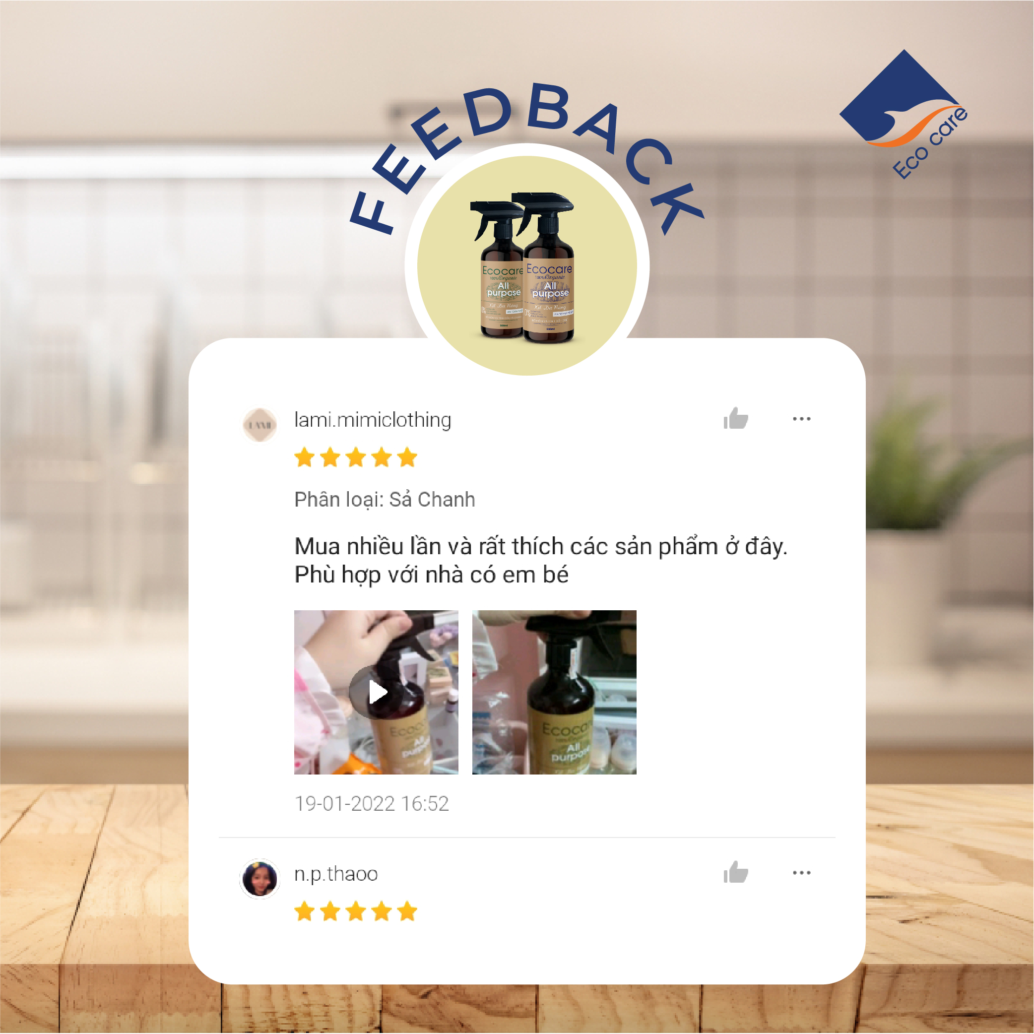 Bình Xịt Tẩy Đa Năng hữu cơ Bồ hòn Ecocare 500ml, chất tẩy đa năng tinh dầu tự nhiên dùng làm nước lau bếp, nước lau bàn ăn THÔNG ĐIỆP TỪ NHÀ SẢN XUẤT
