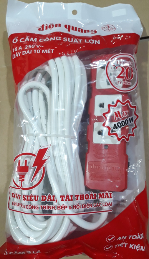 Ngoài ra, dòng sản phẩm ổ cắm Công suất lớn Điện Quang dây dài 10m còn đáp ứng được nhu cầu khách hàng cần sử dụng dây dài hơn như kéo dây tại các công trình, tại các sự kiện, tiệc, nhà ở