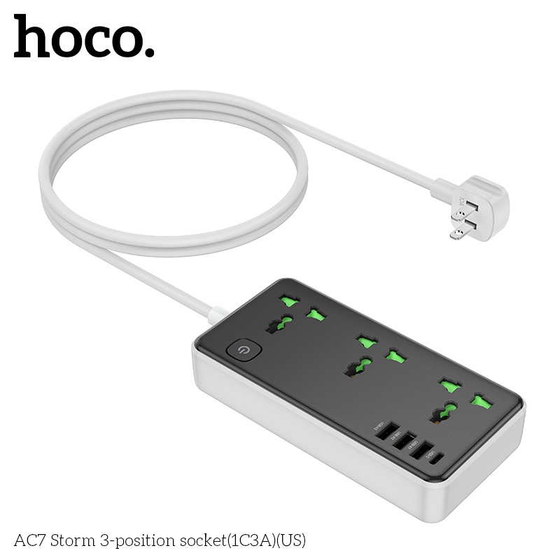 Mua tại TiktokỔ cắm điện đa năng sạc nhanh PD 17W cổng 1 typeC + 3 cổng USB có 3 lỗ cắm tải 2500W dây dài 1.5m AC7 - Hàng chính hãng