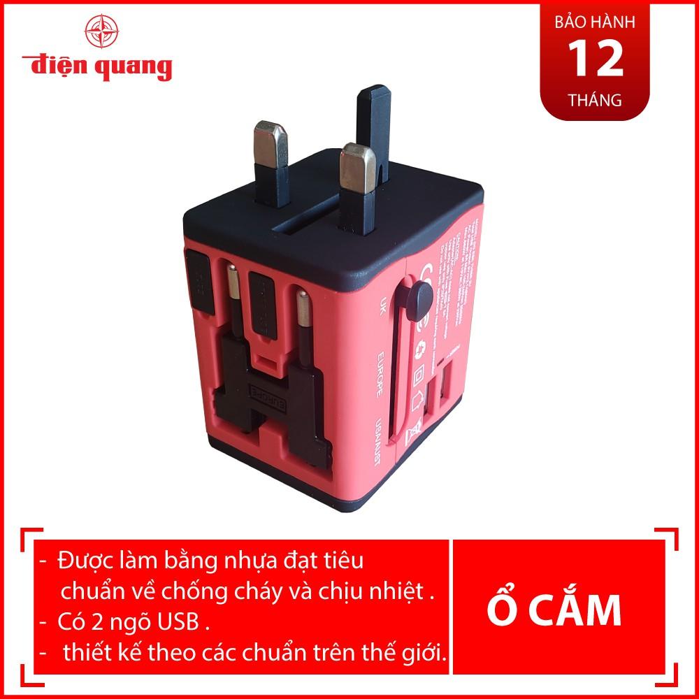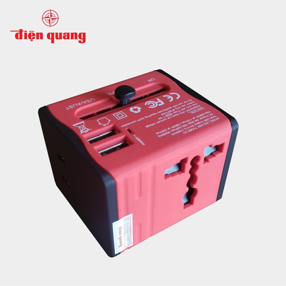 ✨Ổ cắm du lịch Điện Quang ĐQ ESK TV06R 2U (màu đỏ - 2 cổng USB)