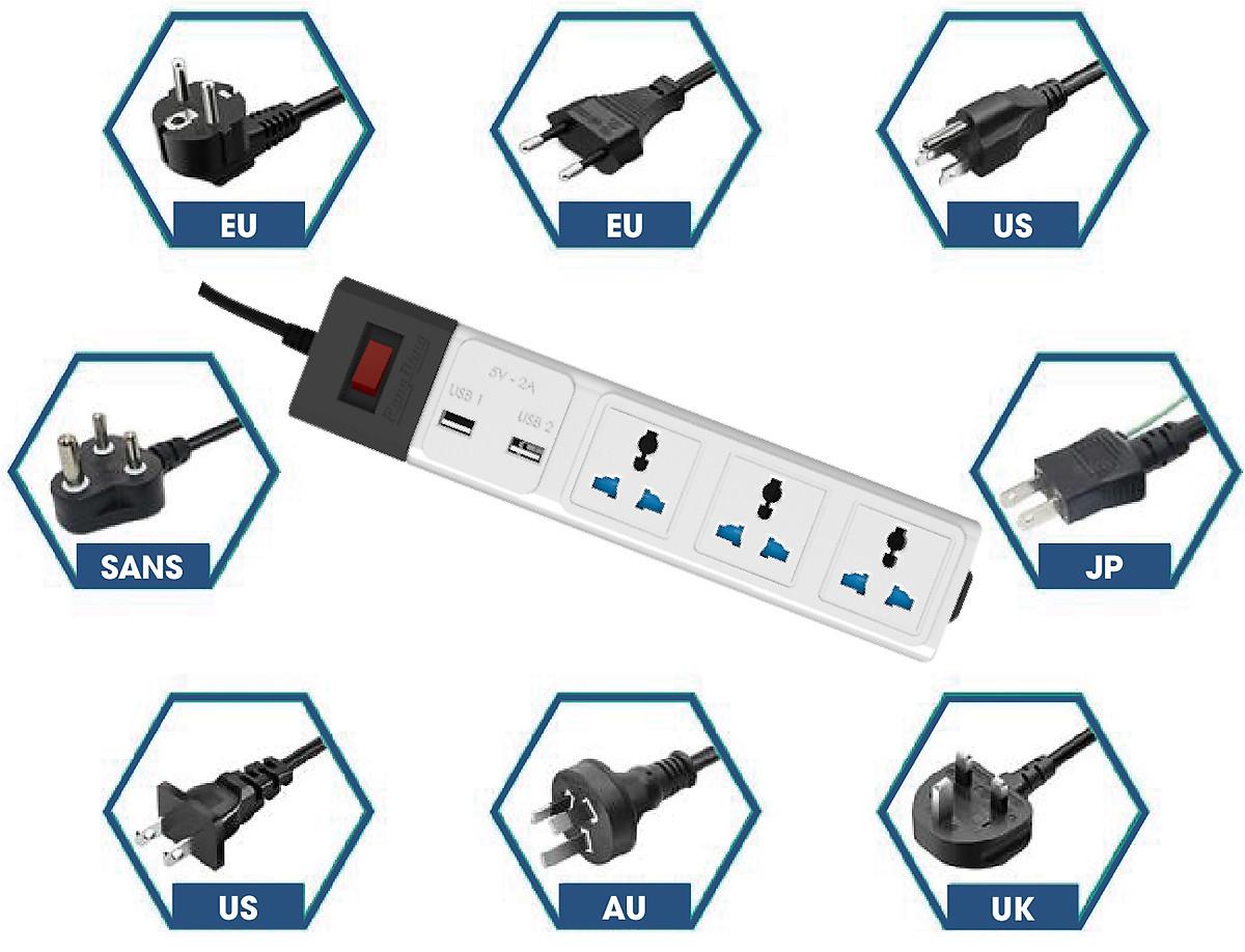 Ổ cắm 3 ổ đa năng + 2 ổ cắm USB cách điện bền đẹp - Chịu nhiệt, chống cháy: 750 độ C - Chiều dài dây điện: 1.8 mét - Chân tiếp xúc với