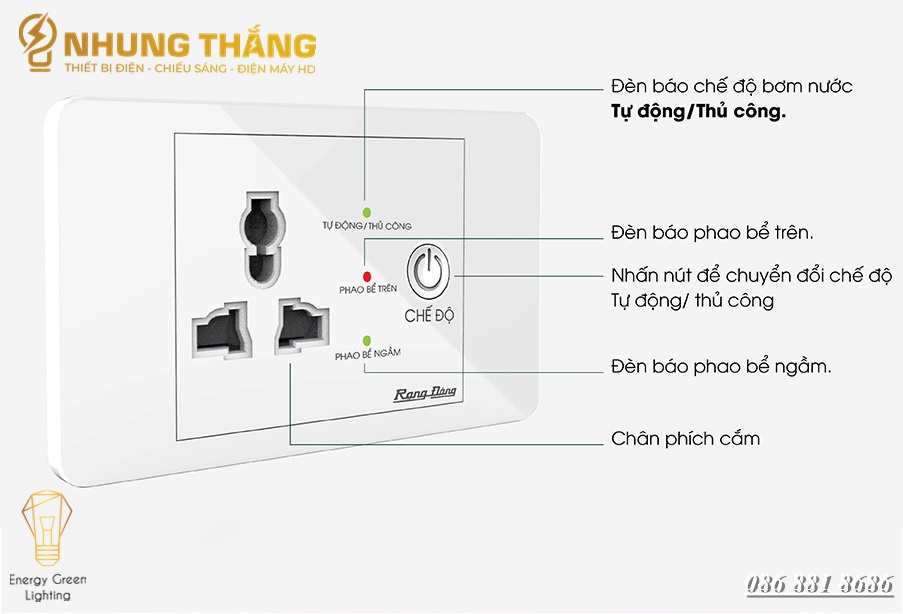 Shop thương hiệu Rạng Đông uy tín, tin cậy Model: 16A Điện áp nguồn danh định: 220V/50Hz Dải điện áp hoạt động: (150-250)V Dòng điện ổ cắm tối đa: 16A Số chu kì bật tắt: