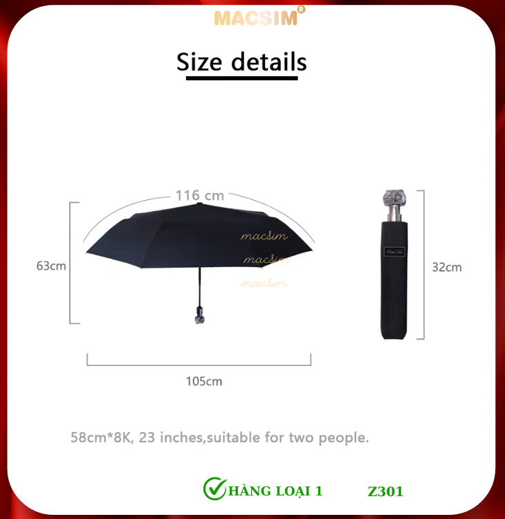 Macsim bảo hành 6 tháng cho tất cả dòng sản phẩm Ô Dù cao cấp: 1 đổi 1 đối với các sản phẩm bị lỗi do nhà sản xuất.