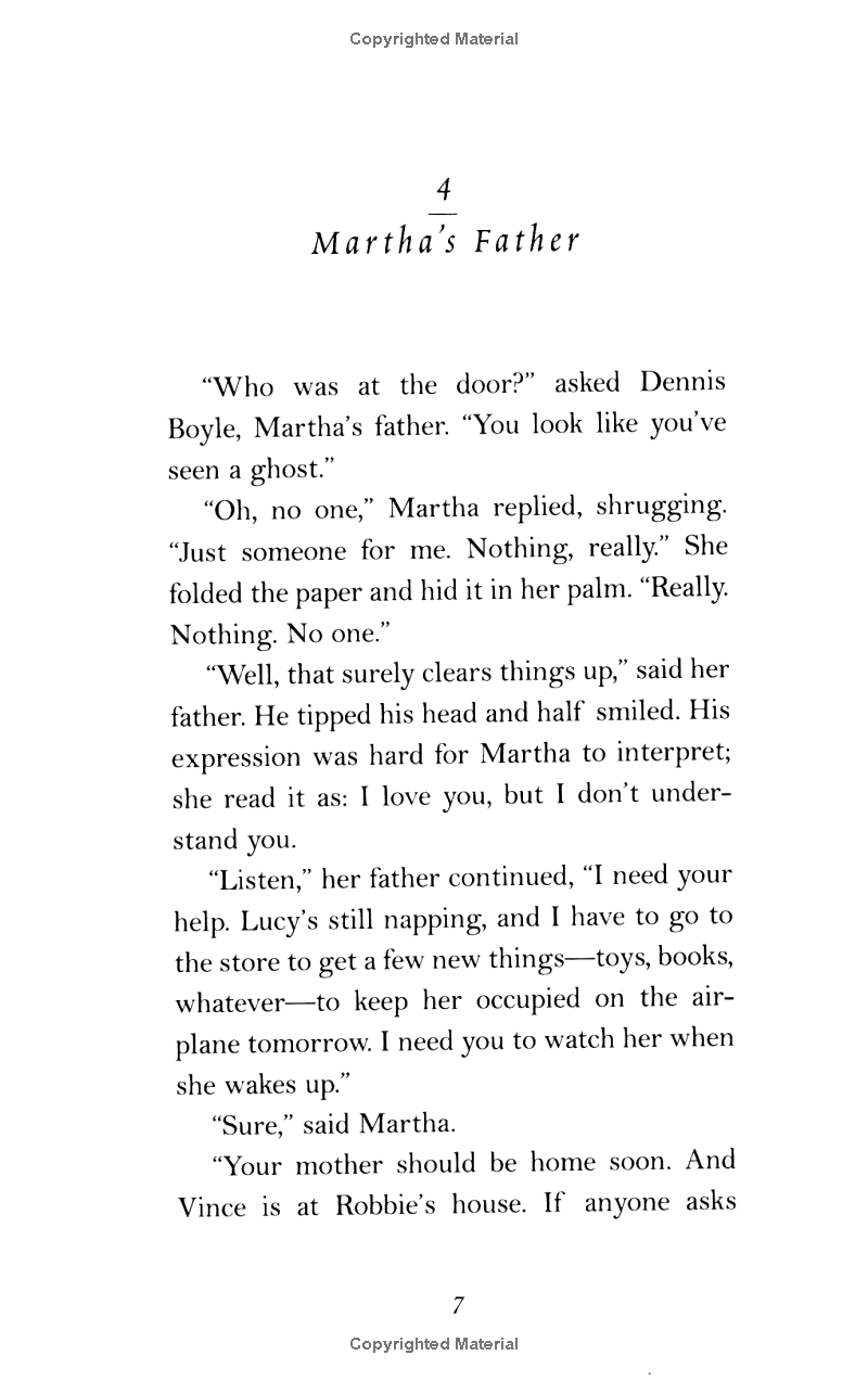 Sometimes life can change in an instant Martha Boyle and Olive Barstow could have been friends, but they weren't. Weeks after a tragic accident, all that is left are eerie connections between the two girls, former classmates who both kept the same secret without knowing it. Now, even while on vacation at the ocean, Martha can't stop thinking about Olive. Things only get more complicated when Martha begins to like Jimmy Manning, a neighbor boy she used to despise. What is going on? Can life for Martha be the same ever again?