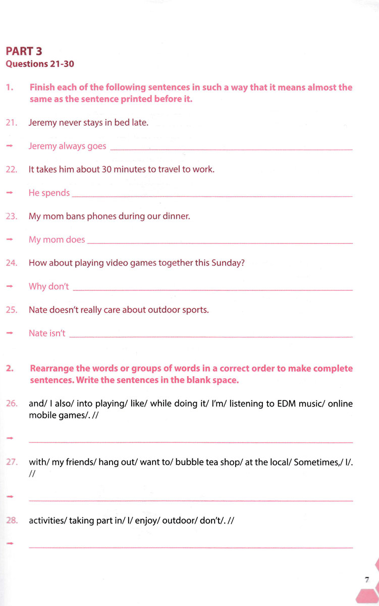 Mua tại TiktokÔn Tập & Kiểm Tra Tiếng Anh 7 (Theo Chương Trình Giáo Dục Phổ Thông 2018) Chúng tôi xin trân trọng giới thiệu đến quý thầy cô, phụ huynh và các em học sinh quyển ÔN TẬP & KIỂM TRA TIẾNG ANH 7. Đây là quyển sách được biên soạn nhằm cung cấp thêm tài liệu ôn tập giúp các em học sinh chuẩn bị tốt cho các bài kiểm tra, đánh giá. Sách giới thiệu 20 đề thực hành được biên soạn trên cơ sở bám sát Chương trình Tiếng Anh THCS và định dạng đề thi trong nước và quốc tế trong những năm gần đây. Mỗi đề sẽ gồm các câu hỏi theo tình huống thực tế để kiểm tra về kiến thức và kỹ năng sử dụng Tiếng Anh (nghe, nói, đọc, viết). Chúng tôi hy vọng rằng quyển sách này sẽ là nguồn tham khảo hữu ích cho giáo viên và học sinh trong việc củng cố kiến thức trọng tâm trong chương trình Tiếng Anh lớp 7 và THCS. Xin trân trọng giới thiệu và cảm ơn quý thầy, cô, phụ huynh và các em học sinh!