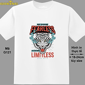 ✨Once you become fearless life becomes limitless, mã G121. Áo thun nghệ thuật cho nam nữ, cặp đôi, gia đình, lớp nhóm, đồng phục công ty. Áo phông Goking hàng hiệu
