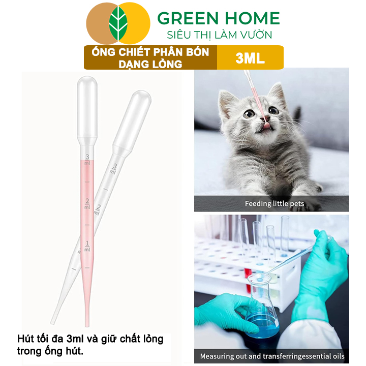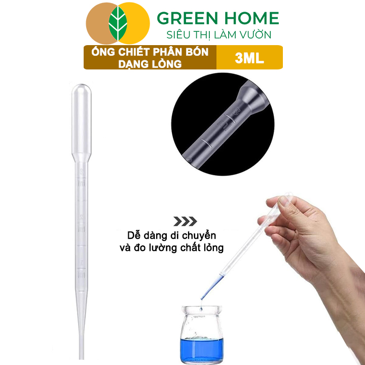 ✨Ống Pipet GreenHome, 3ml, D15cm, Chiết Phân Bón Dạng Nước, Có Vạch Định Lượng, Đa Năng, Tiện Dụng