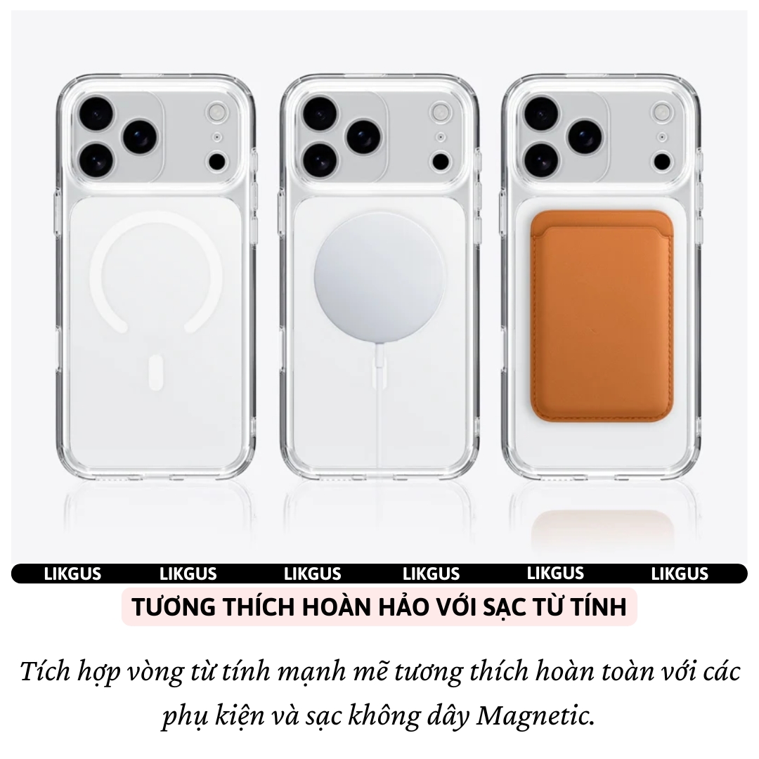 - Tương thích với sạc từ tính (Mag - Safe) - Cho phép sạc không dây nhanh chóng, không cần tháo ốp – tiện lợi trong mọi tình huống sử dụng. - Bảo vệ toàn