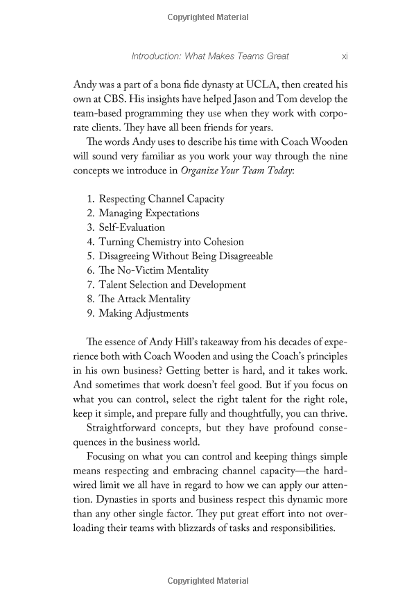 In Organize Your Team Today, Selk and Bartow show how it takes collective mental toughness to win, developed only through a clear understanding of the goals, limitations, roles and personalities on your team. Great leaders respect and embrace channel capacity, Selk and Bartow explain, which means they don't overload their teams with blizzards of tasks and responsibilities. They bust the "focus" and "relationship" fallacies, as those words are meaningless for teams unless they are byproducts of activities that really matter. And Selk and Bartow teach how to manage expectations, since doing so creates a level of respect between the leader and the team--and among the team members--that is a catalyst for peak achievement.