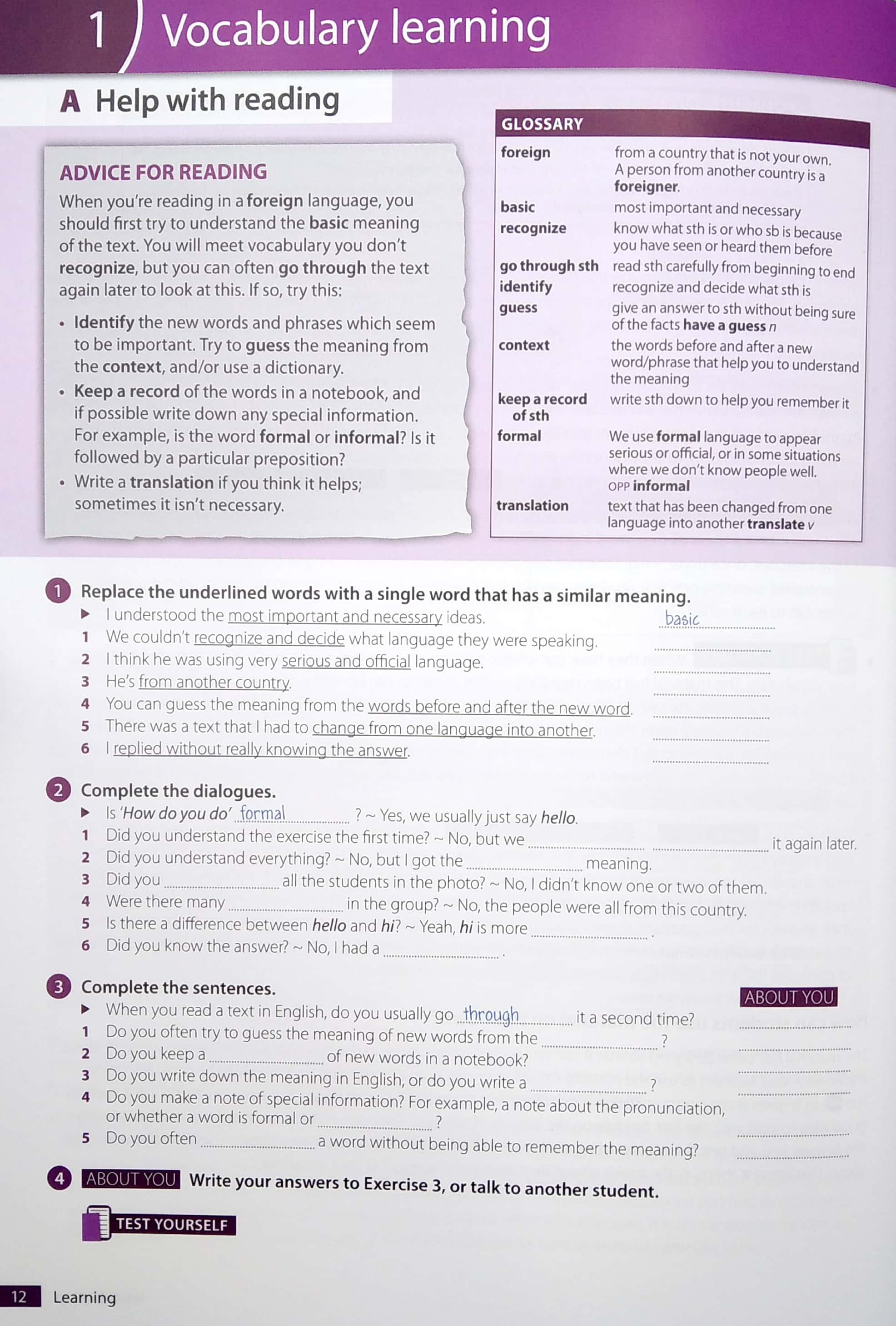 درس اول کتاب لغت، بخش اول، Talk about vocabulary Learning