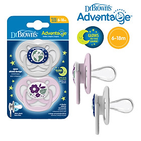 ✨[ PA22003-INTL ] Bộ 2 ty ngậm Dr.Brown's Advantage đầu tròn, phát sáng dạ quang ( 6-18m )