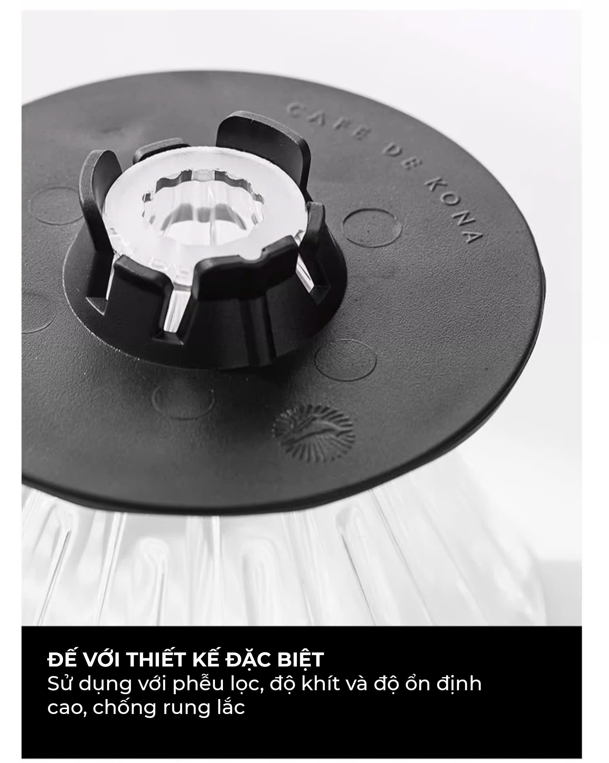Tháo rời được đáy nhựa: Để sử dụng thành bộ Carafe với bình Decanter của Cafede Kona cực kỳ hoàn hảo, hoặc đặt lên giá Pour Over mà không cần đế.