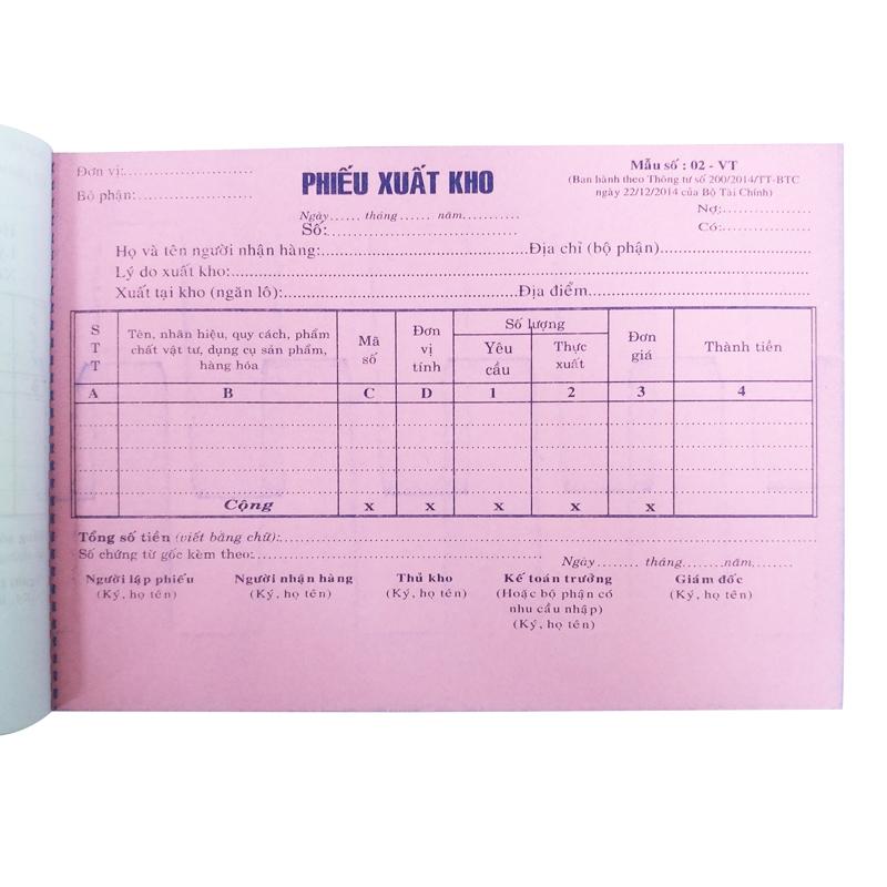 Phiếu xuất kho 3 liên được thiết kế dạng cuốn, tiện lợi khi sử dụng.