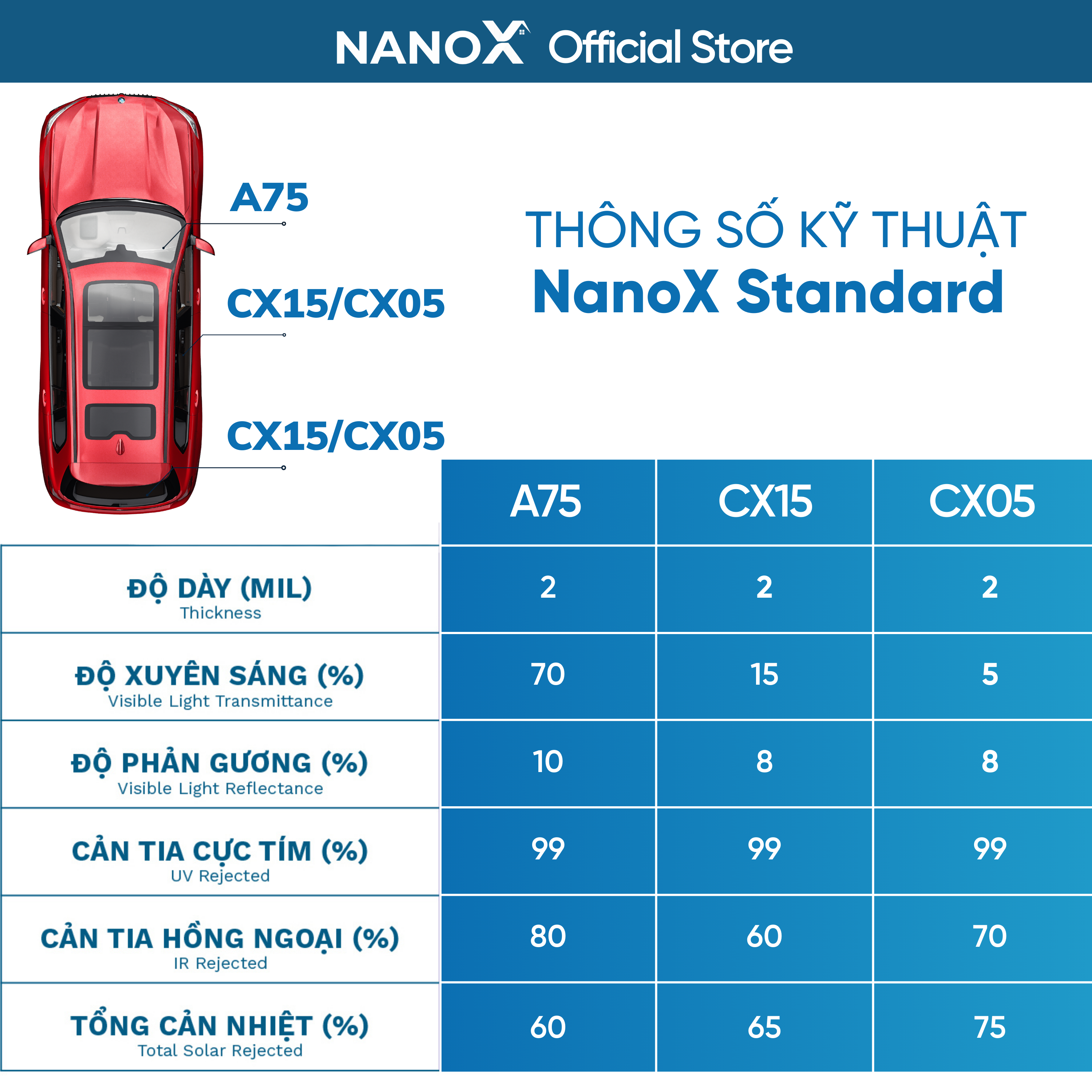 1. Mỗi mã phim cách nhiệt sẽ có thông số kỹ thuật riêng dựa trên các nhu cầu khác nhau. Nếu gặp khó khăn trong lựa chọn, Quý khách vui lòng nhắn tin cho Shop. NanoX luôn sẵn sàng hỗ trợ, tư vấn giúp Quý khách chọn được mã phim phù hợp nhất.