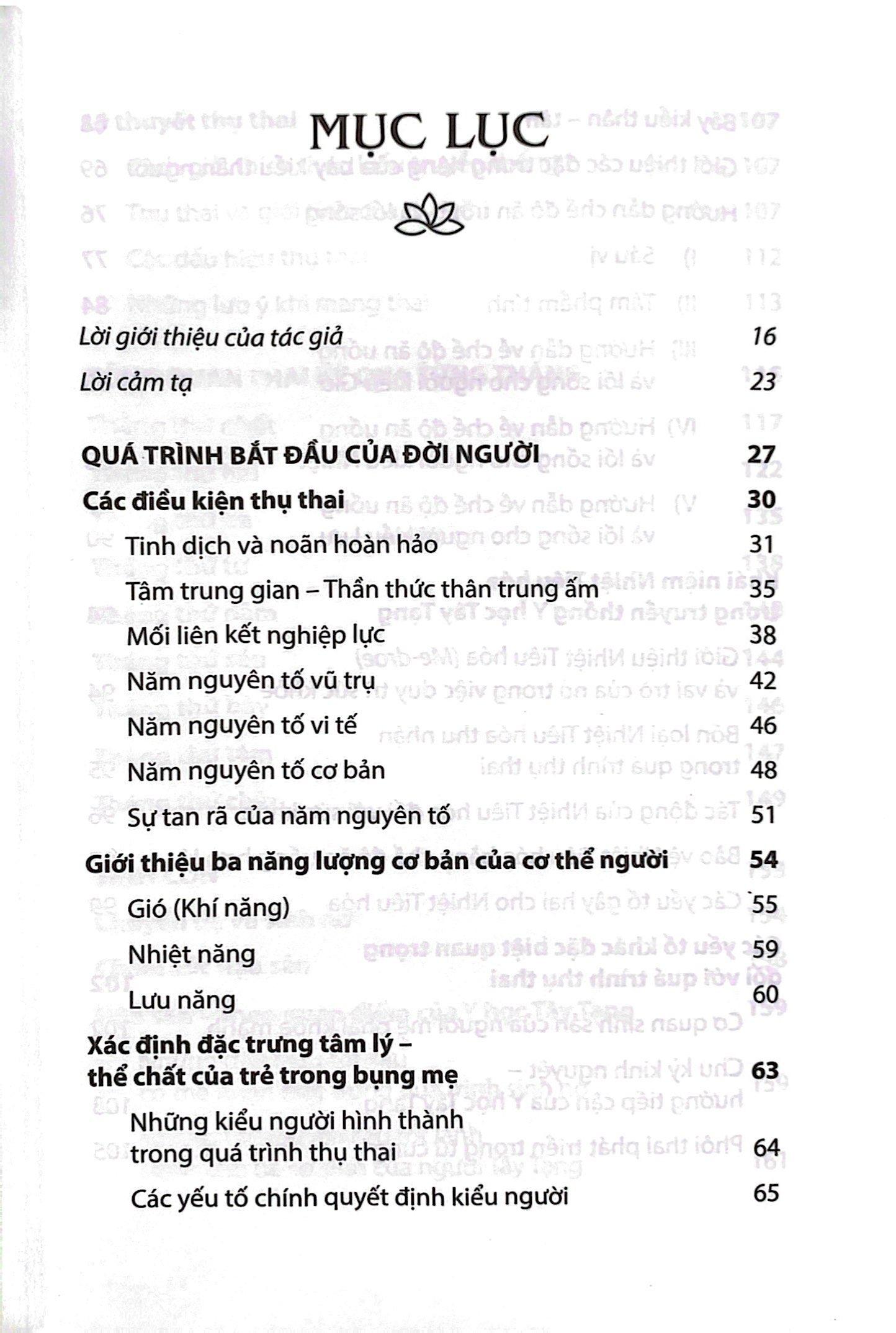 Cuốn sách giới thiệu phôi thai học theo Phật giáo Tây Tạng và chia sẻ những kiến thức quý giá cho những người sắp làm cha mẹ, có nhu cầu tìm hiểu cách để bảo đảm sức khỏe và hạnh phúc cho con cái sau này, cũng như duy trì sức khỏe cho người mẹ trong suốt thai kỳ. Qua cuốn sách này, người đọc hiểu được mối tương quan giữa Phật giáo và Y học Tây Tạng qua cách tiếp cận tổng thể thân – tâm. Cuốn sách trình bày bao quát những phân mảnh quan trọng trong mối liên kết giữa Y học Tây Tạng và Phôi Thai học ở con người. Cuối cùng, cuốn sách giúp khắc phục những hiểu biết phiến diện về Y học Tây Tạng.