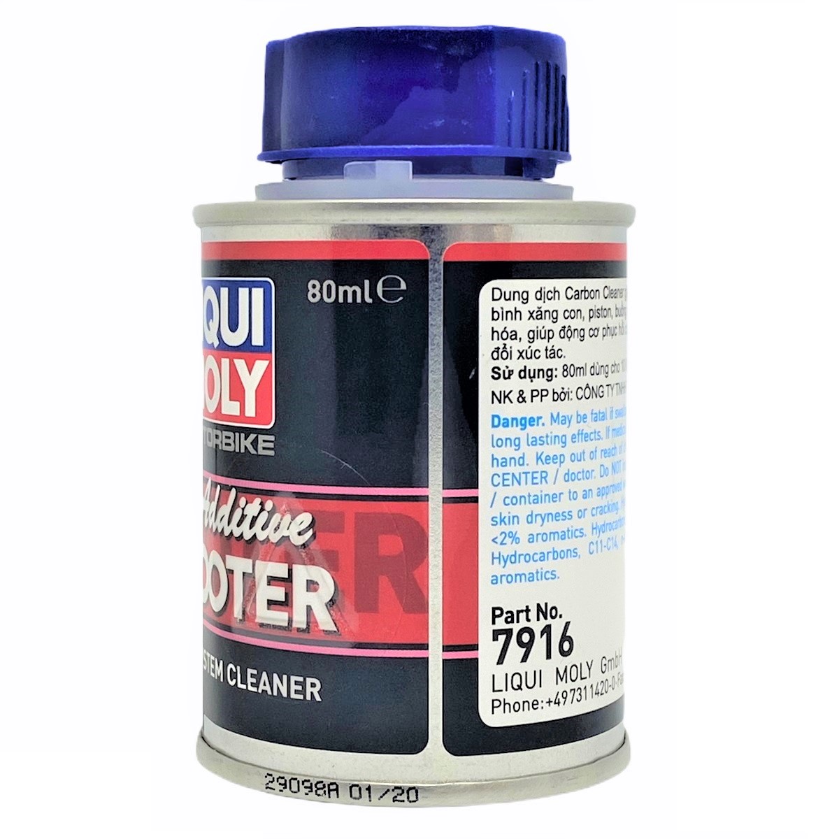 - Tên sản phẩm: Phụ gia vệ sinh buồng đốt tẩy carbon cho xe máy Liqui Moly 7916