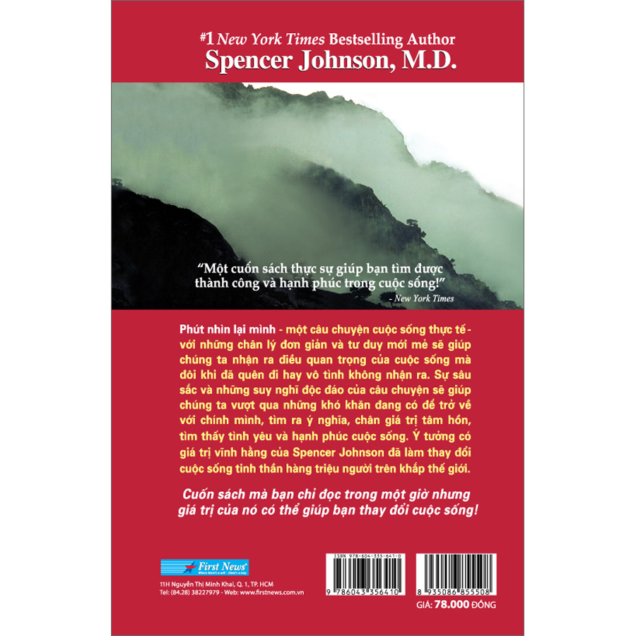 Mua tại TiktokPhút Nhìn Lại Mình - Một câu chuyện cuộc sống thực tế - với những chân lý đơn giản và tư duy mới mẻ sẽ giúp chúng ta nhận ra điều quan trọng của cuộc sống mà đôi khi đã quên đi hay vô tình không nhận ra. Sự sâu sắc và những suy nghĩ độc đáo của câu chuyện sẽ giúp chúng ta vượt qua những khó khăn đang có để trở về với chính mình, tìm ra ý nghĩa, chân giá trị tâm hồn, tìm thấy tình yêu và hạnh phúc trong cuộc sống. Ý tưởng có giá trị vĩnh hằng của Spencer Johnson đã làm thay đổi cuộc sống tinh thần hàng triệu người trên khắp thế giới. Cuốn sách bạn chỉ đọc trong một giờ nhưng giá trị của nó có thể giúp bạn thay đổi cuộc sống!