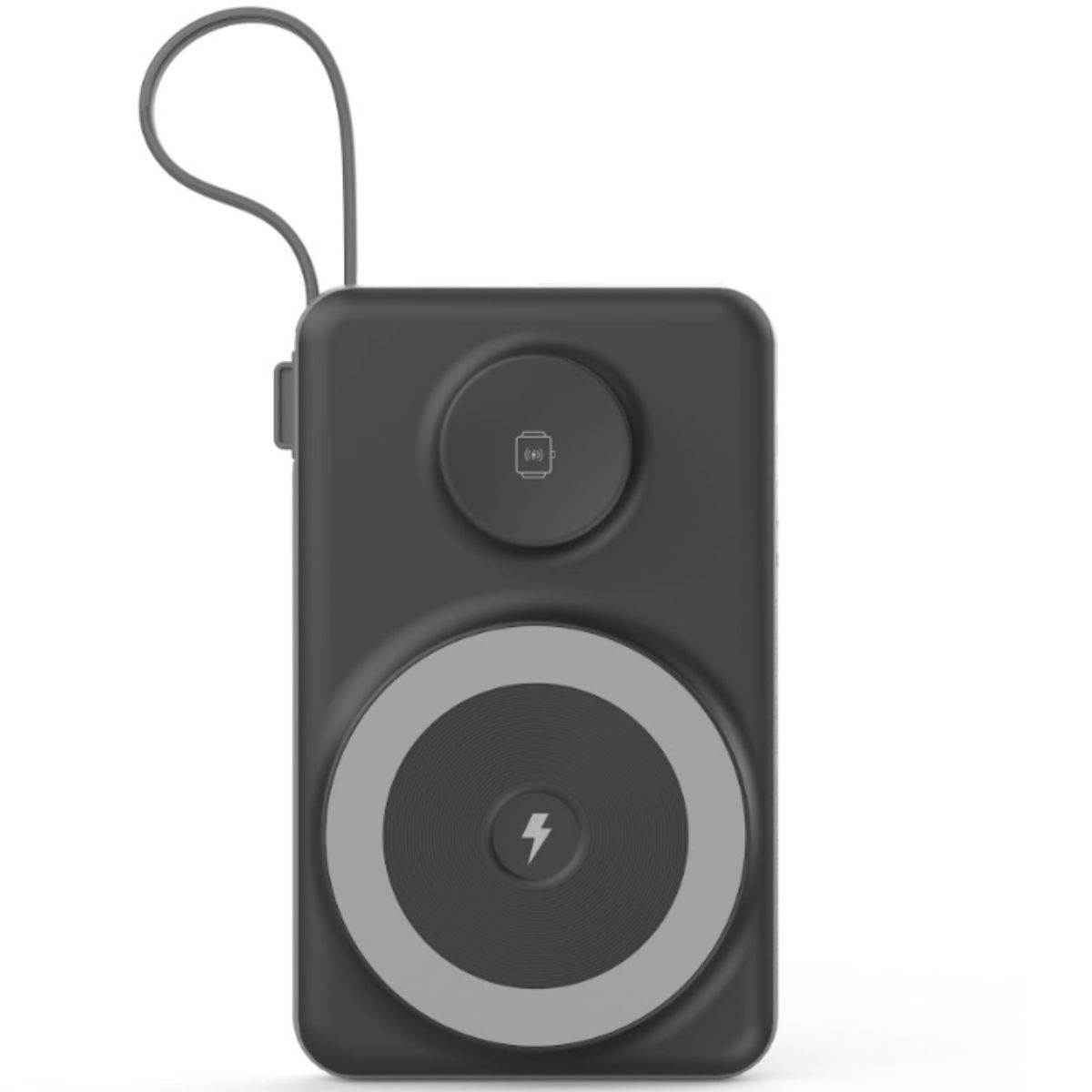 • Được tích hợp thêm quai cầm, có thể móc balo hoặc treo vào bất cứ đâu để mang đi mọi nơi rất tiện lợi. Đồng thời cũng là 2 cáp sạc Type-C và Light.ning độc lập dễ dàng tháo và sạc bất cứ đâu.