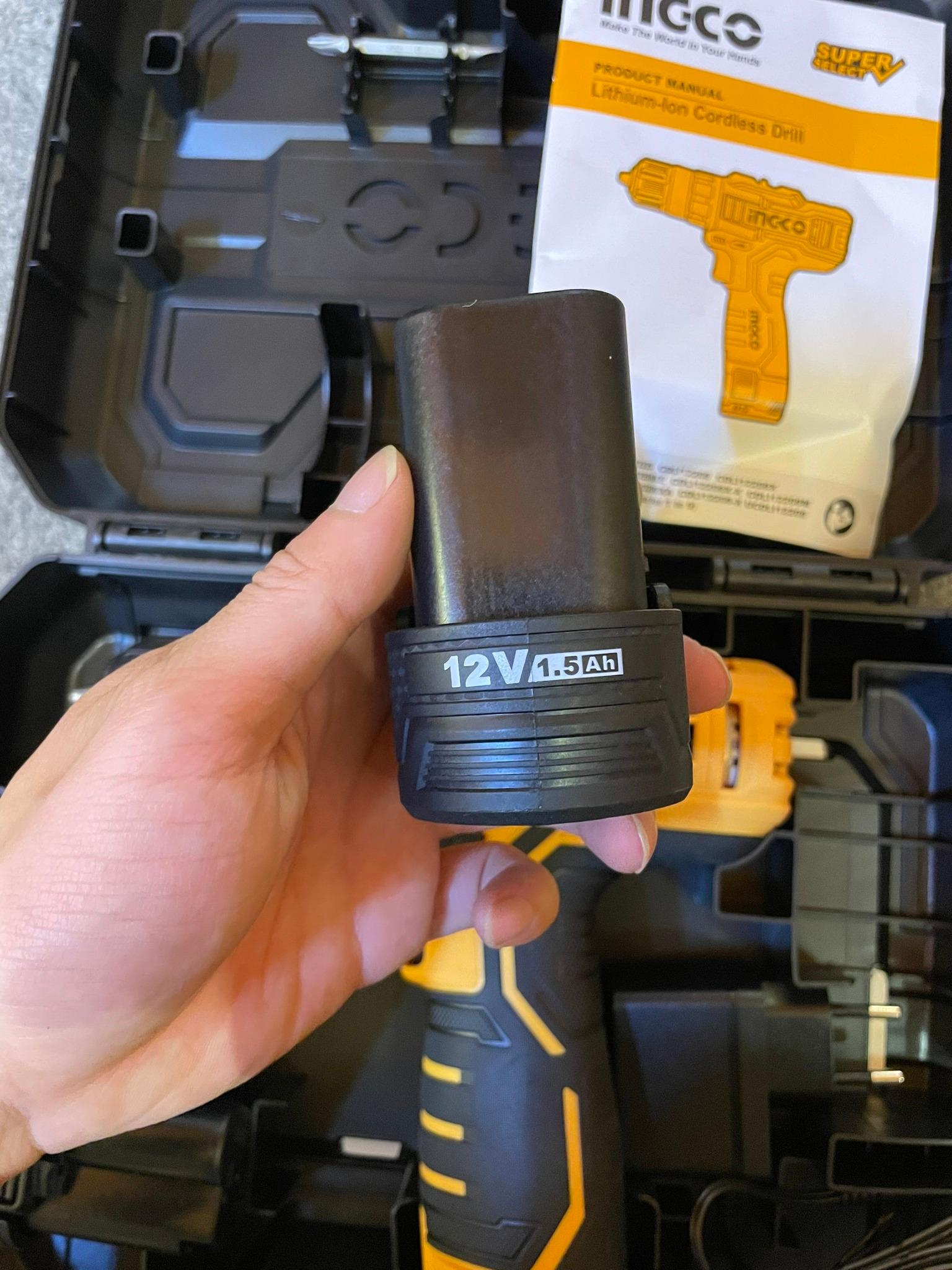 Ingco là thương hiệu lớn chuyên sản xuất mặt hàng công cụ dụng cụ dành cho thợ xây dựng, thợ cơ khí. Trong đó mặt hàng máy khoan Ingco là dòng sản phẩm rất được ưu chuộng nhất hiện nay về mẫu mã cũng như chất lượng các thiết bị đem lại. Thương hiệu Ingco đã từng nỗi tiếng tại các thị trường Châu Âu, Á, Đông Nam Á và nay đã về với Việt Nam. Mặc dù là thương hiệu mới mở bán tại Việt Nam nhưng Ingco Việt Nam được nhiều công trình chọn lựa về chất lượng cũng như giá cả. Ingco Việt Nam ngày càng thể hiện uy tín chất lượng trên thị trường Việt Nam hiện nay. Thông số kĩ thuật -Mã sản phẩm: FBLI12152 -Thương hiệu: Ingco -Xuất xứ: Trung Quốc -Dung lượng pin:12V.7Pin Lithium-Ion 1.5Ah -Một pin sử dụng cho tất cả các dòng sản phẩm S12. -Bảo hành : 6 tháng