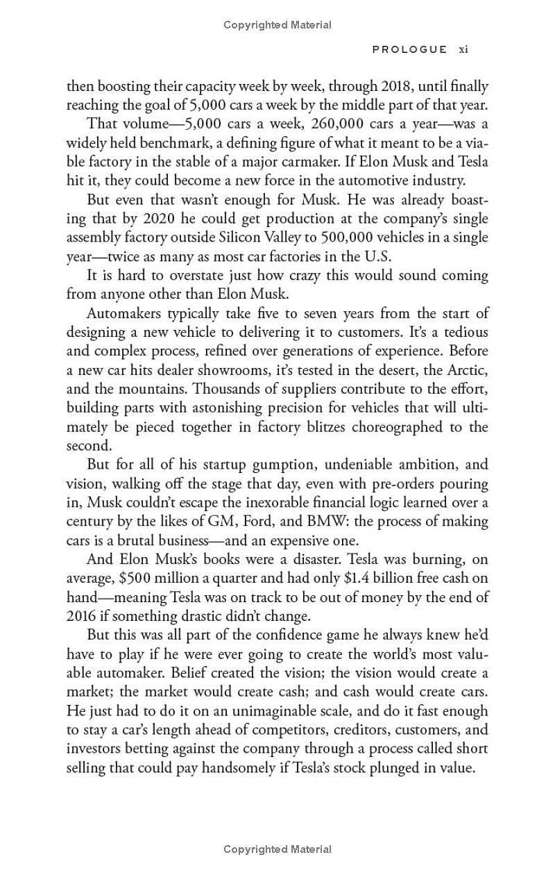 Tesla would undergo a truly hellish fifteen years, beset by rivals, pressured by investors, hobbled by whistleblowers, buoyed by its loyal supporters. Musk himself would often prove Tesla's worst enemy--his antics repeatedly taking the company he had funded himself to the brink of collapse. Was he an underdog, an antihero, a conman, or some combination of the three?