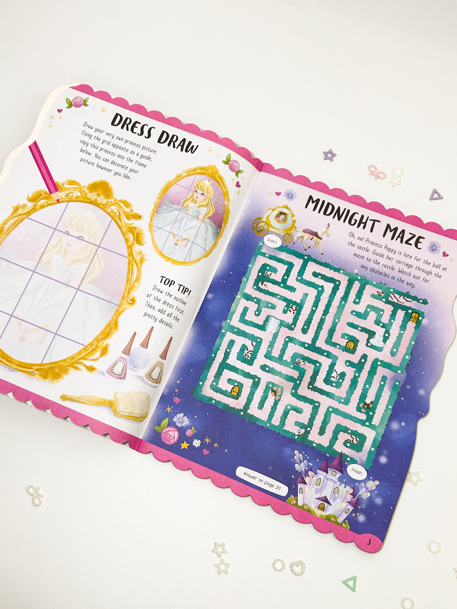 Princesses everywhere will love the engaging activities in this pretty handbag-shaped book