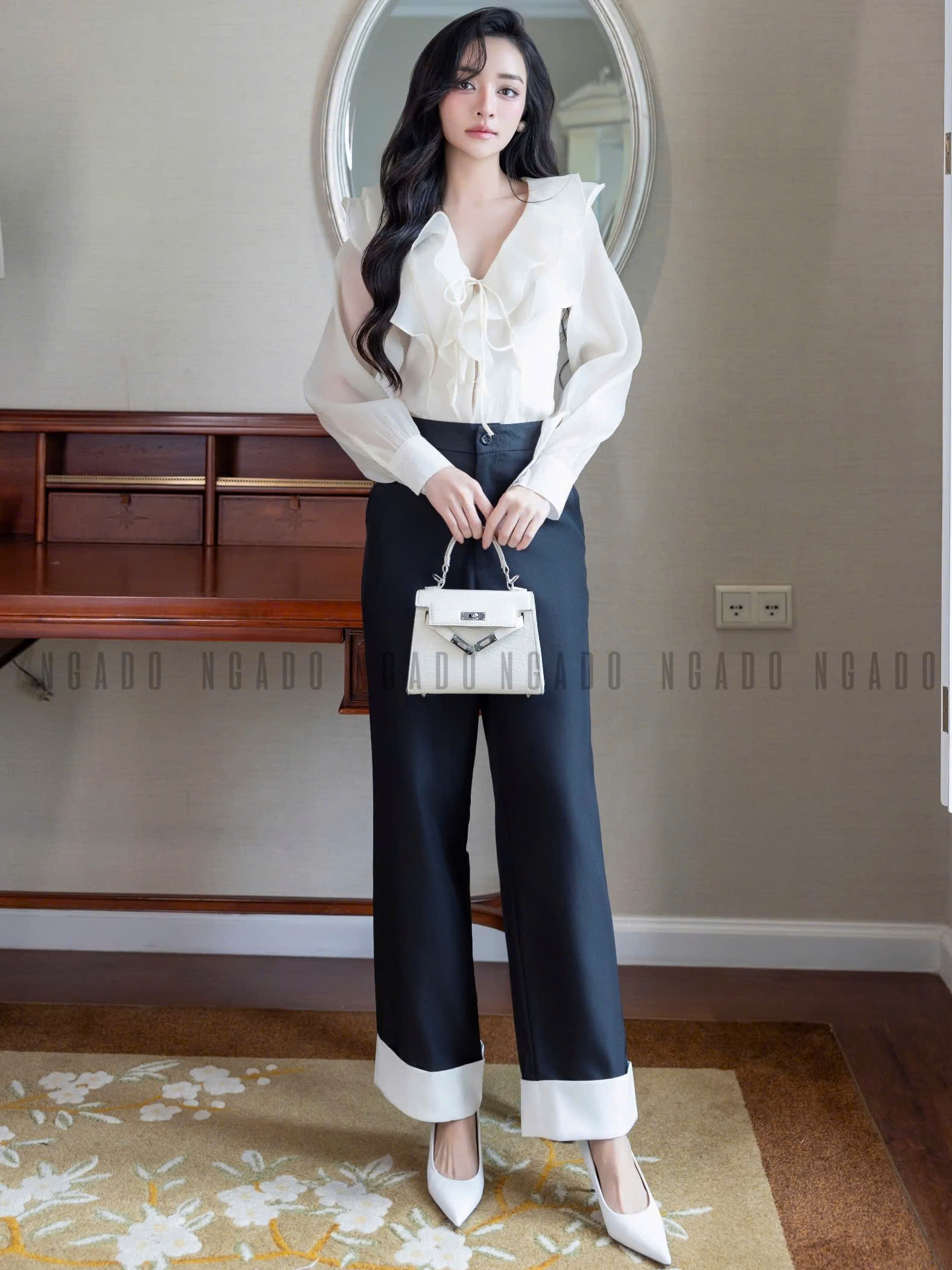 ✨Quần đen phối trắng NGADO, Quần tây nữ, Quần công sở, Quần ống đứng, ống rộng