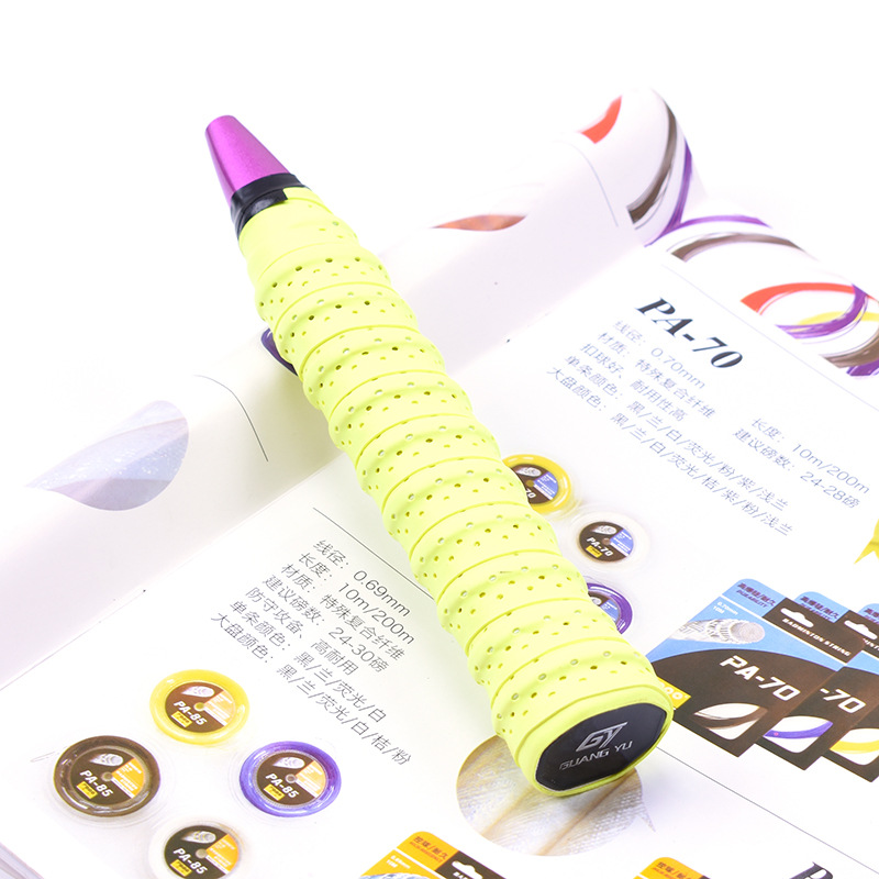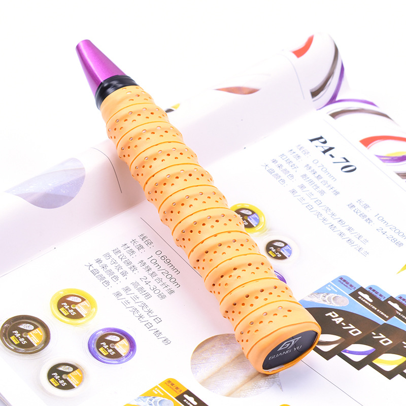 Cấu tạo quấn cán vợt có gân chống xoay vợt, thấm hút mồ hôi Tennis, Cầu Lông, Bóng chày Minh House: Gân bằng mút nằm bên trong quấn cán, bề mặt quấn cán có các lỗ thoáng để thấm hút và thoát mồ hôi