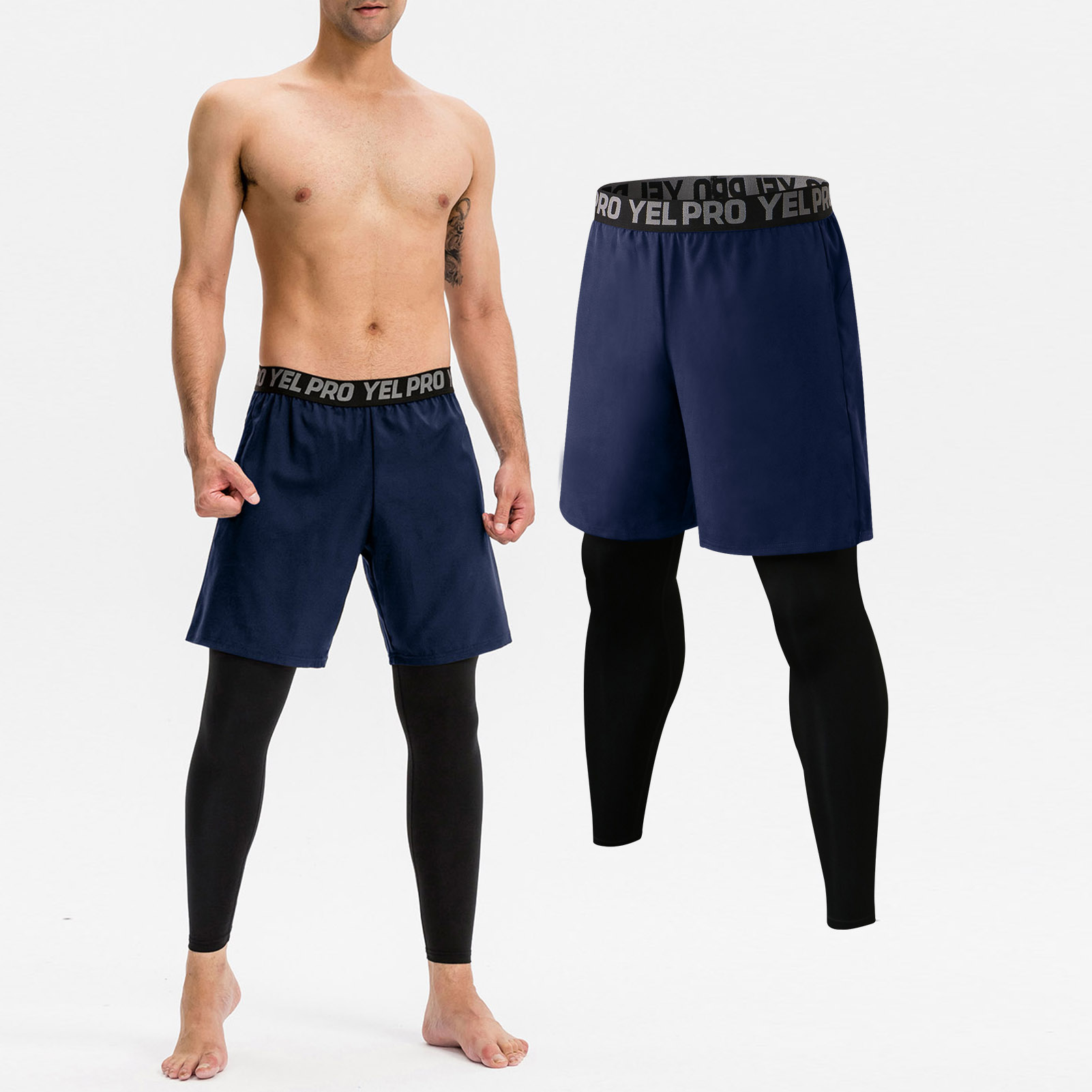✨Quần đùi nam Yel Pro Men 2-in 1 đàn hồi có túi eo co giãn kiểu dáng thể thao
