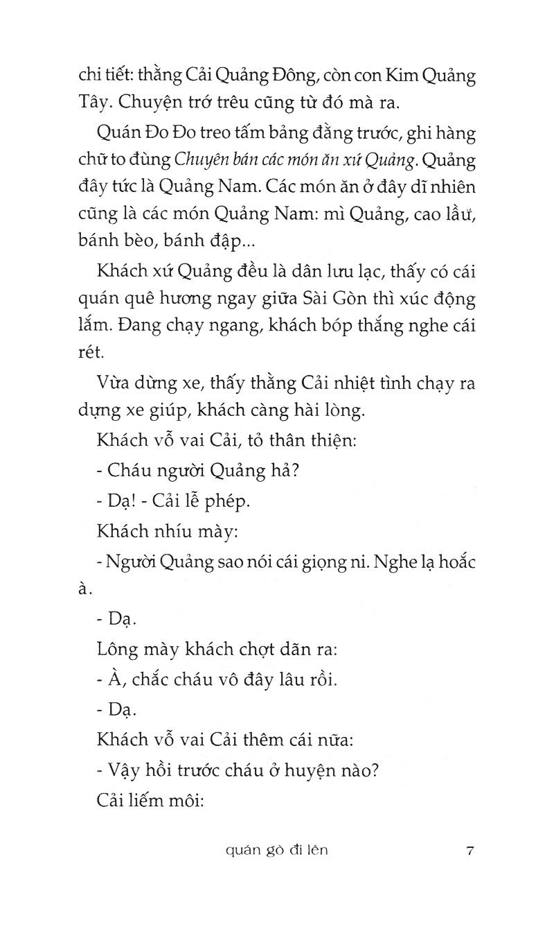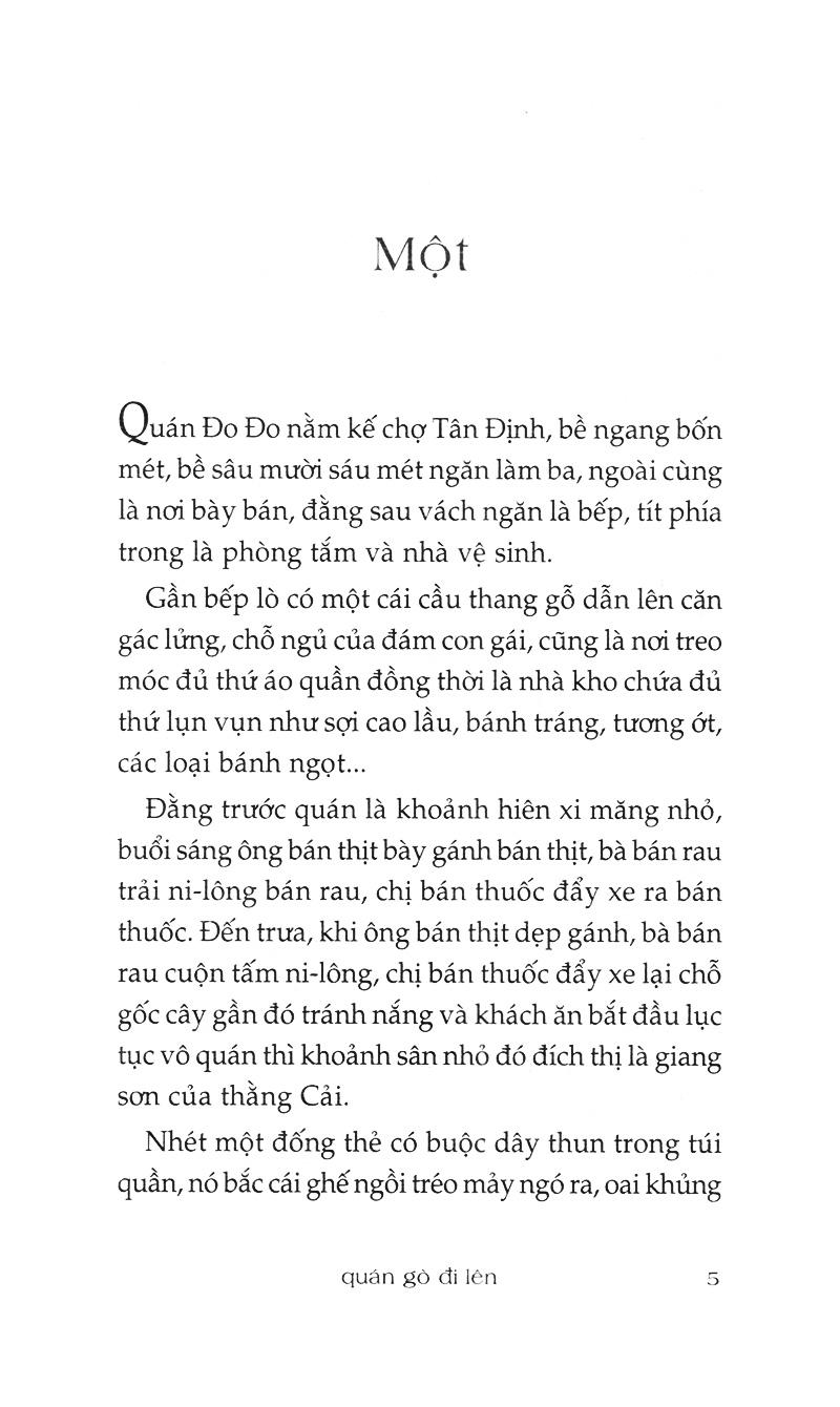Mua tại TiktokChuyện diễn ra ở quán Đo Đo, quán ăn do tác giả sáng lập để nhớ quê nhà, nơi có chợ Đo Đo – chỗ Quán Gò đi lên ấy. Bởi thế, trong câu truyện tràn ngập những nỗi nhớ, nhớ món ăn, nhớ giọng nói, nhớ thói quen, nhớ kỉ niệm… Dẫu là câu chuyện ngập tràn nỗi nhớ, vẫn nghe trong đó những tiếng cười rất vui.