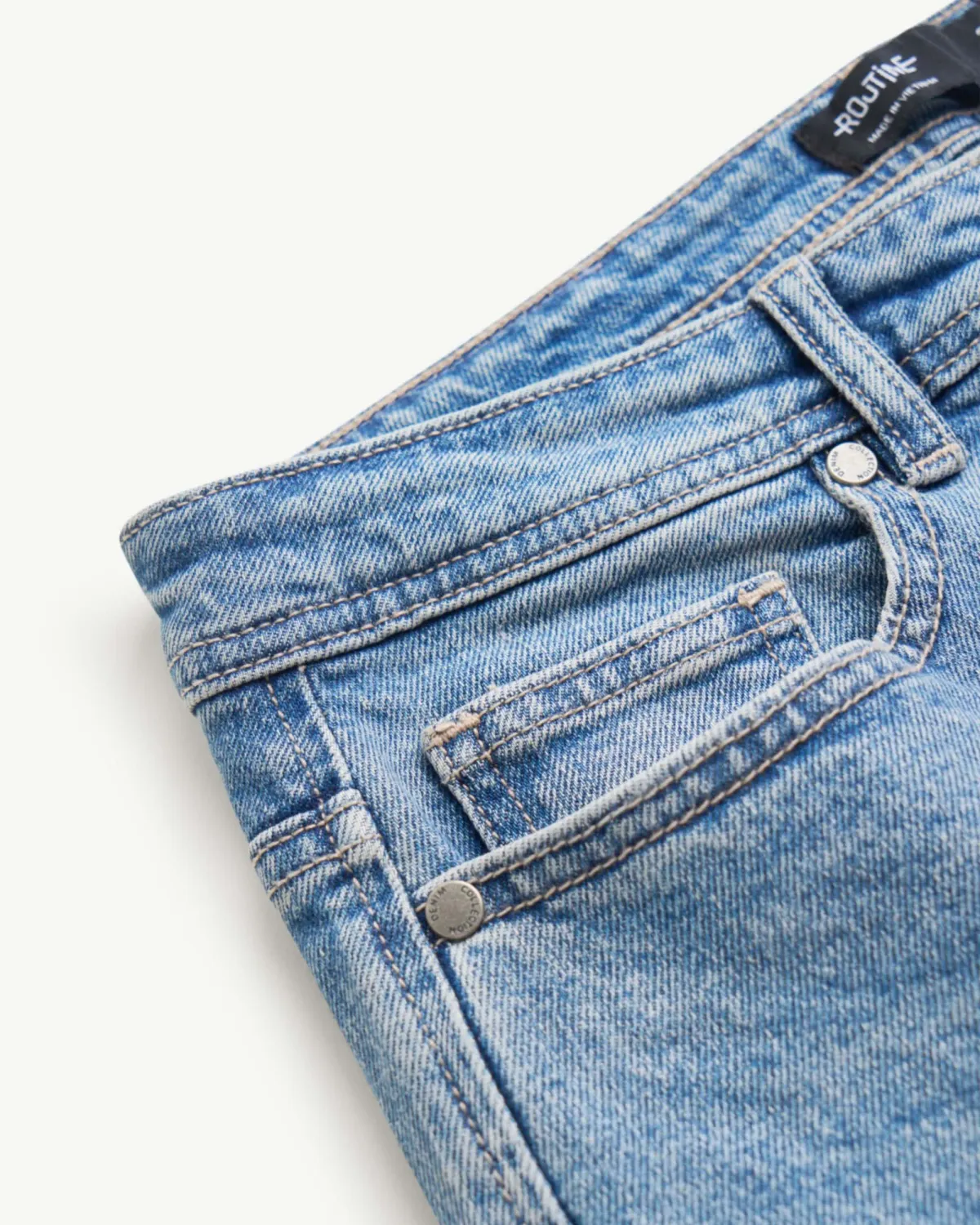 Quần denim nam Form Slim cropped - RT 10S25DPA105C | ROUTINE CÀ MAU Đặc điểm nổi bật Form : Slim cropped Fabric : Denim Gender: Nam Collection: Core Thông tin chi tiết: Mẫu quần denim