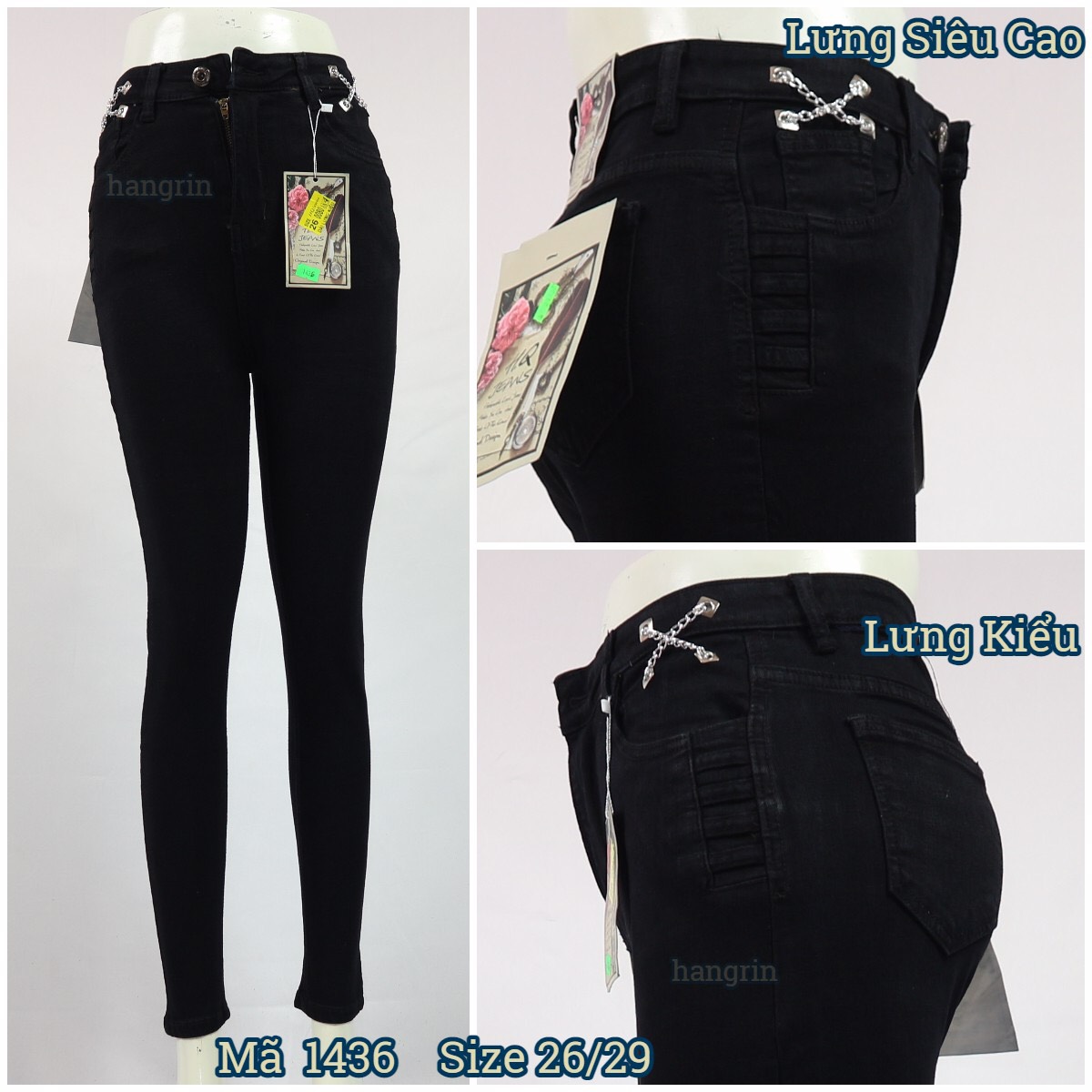 – Quần Jean Nữ Lưng Cao Lai Kiểu Màu Đen Tuyền Size 26 -29 – Chất liệu dày dặn, co giãn rất nhiều – Lưng kiểu, lưng cao, lưng siêu cao, có cúp ngang – Lai thường,
