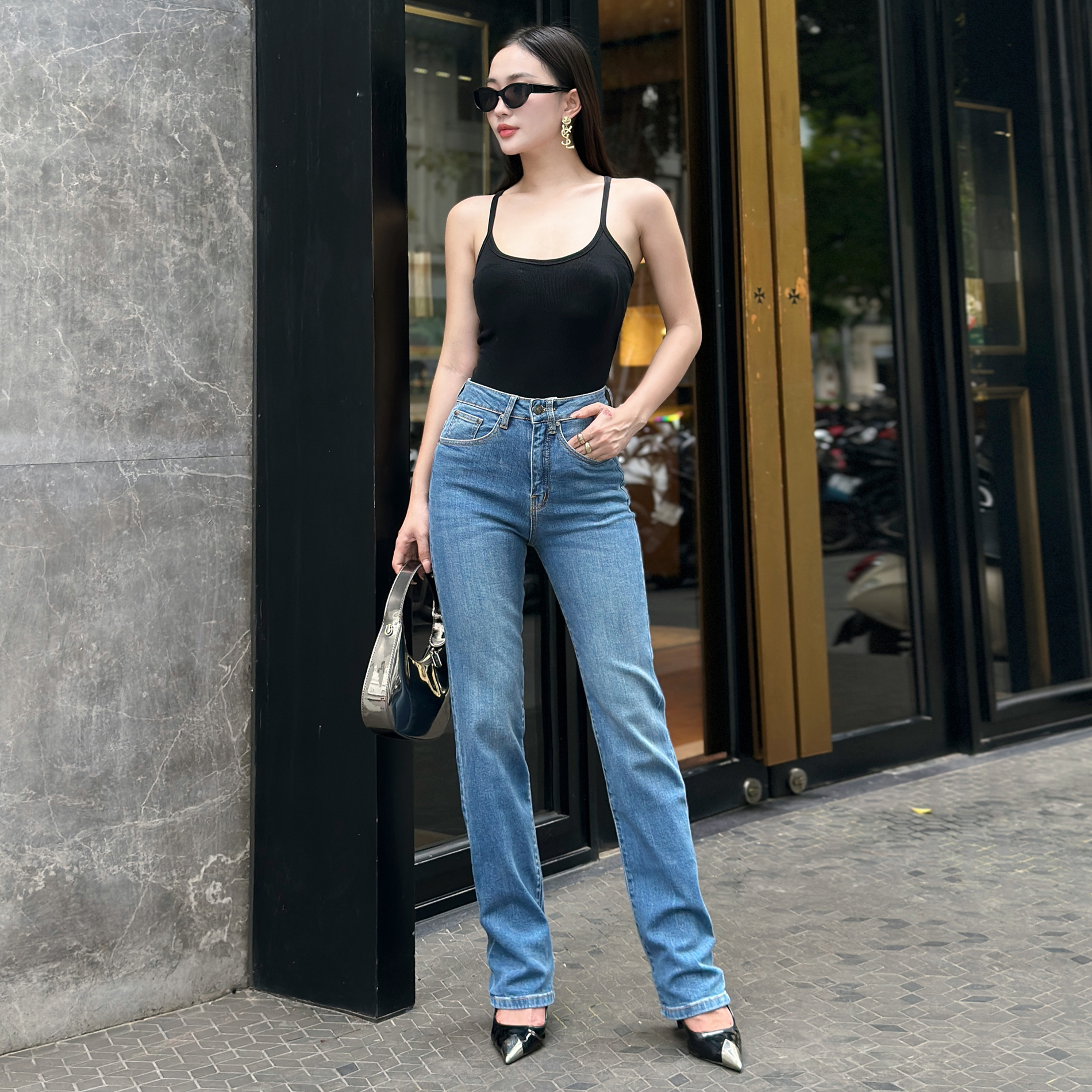 ✨Quần Jean Ống Đứng Lưng Cao Dáng Slim Classic Blue Aaa Jeans