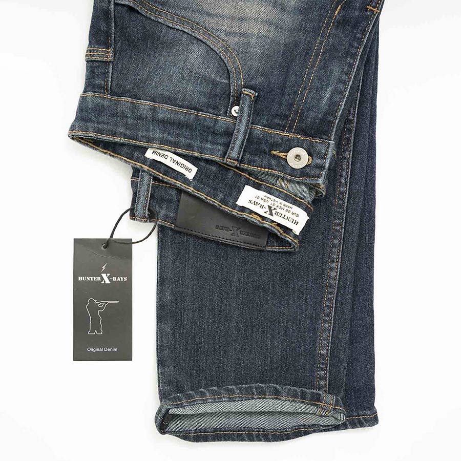 Quần Jeans Nam Cao Cấp HUNTER X-RAYS Form Slimfit Thun Màu Xanh Đậm Phủ Dơ Bụi D27 Đặc điểm nổi bật: Nút được đúc nguyên khối bằng đồng và nổi bật thương hiệu HUNTER X-RAYS