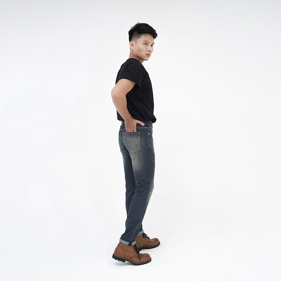 Quần jeans nam boy phố form slimfit thun màu xanh phủ dơ D26 | Hunter X-Rays