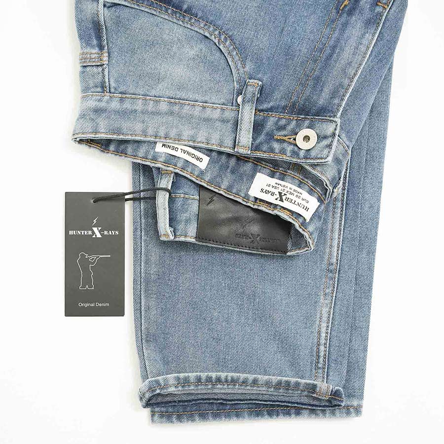 Quần Jeans Nam Cao Cấp HUNTER X-RAYS Form Slimfit Thun Màu Xanh Phủ Dơ NhẹD33 Đặc điểm nổi bật: Nút được đúc nguyên khối bằng đồng và nổi bật thương hiệu HUNTER X-RAYS đảm bảo