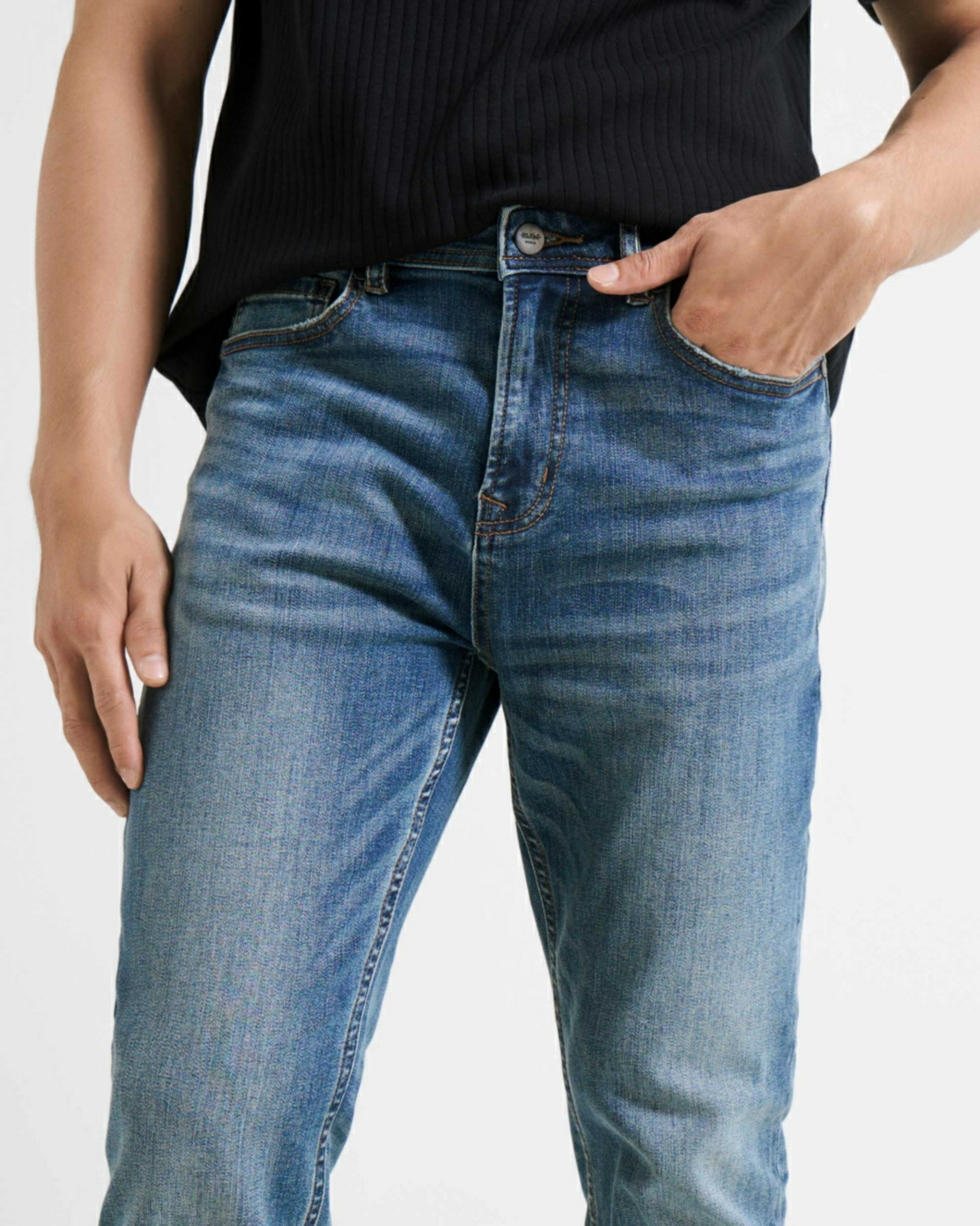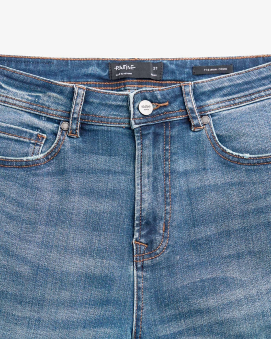 Quần Jean Nam ROUTINE Ống Ôm Xanh Trơn Cotton Spandex Form Slim - 10S24DPA004R1 | ROUTINE CÀ MAU ĐẶC ĐIỂM NỔI BẬT Nhóm sản phẩm Quần Jean Form dáng Slim Giới tính Nam Chất liệu