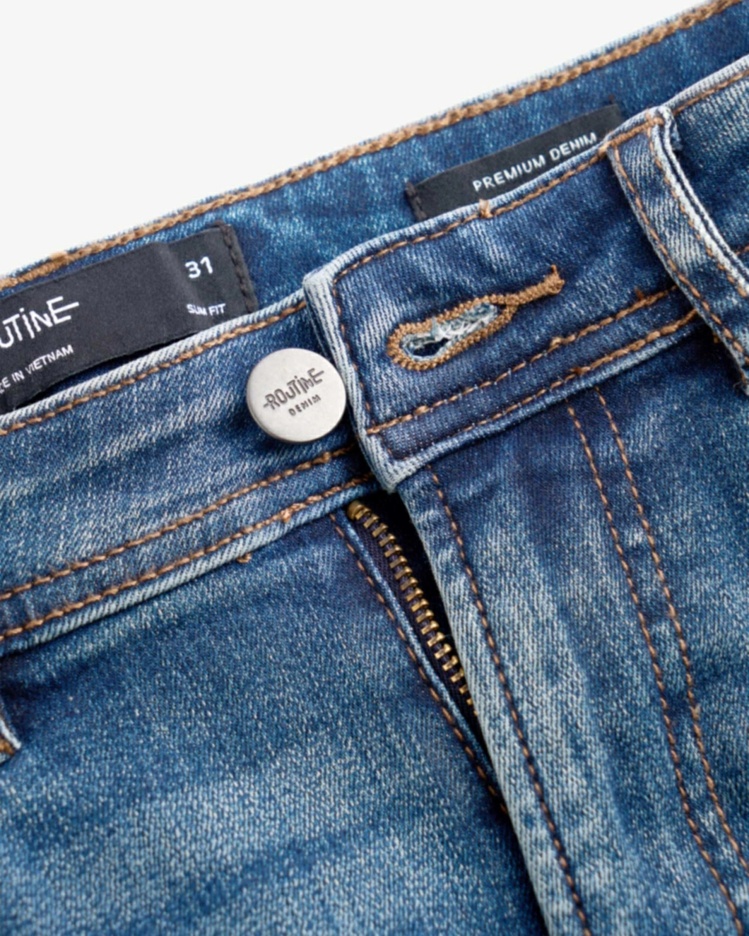 Quần jeans nam trơn ROUTINE Form Slim Premium màu Xanh INDIGO - ROUTINE 10F23DPA012P ĐẶC ĐIỂM NỔI BẬT Nhóm sản phẩm Quần Jean Form dáng Slim Giới tính Nam Sản phẩm này là tài sản