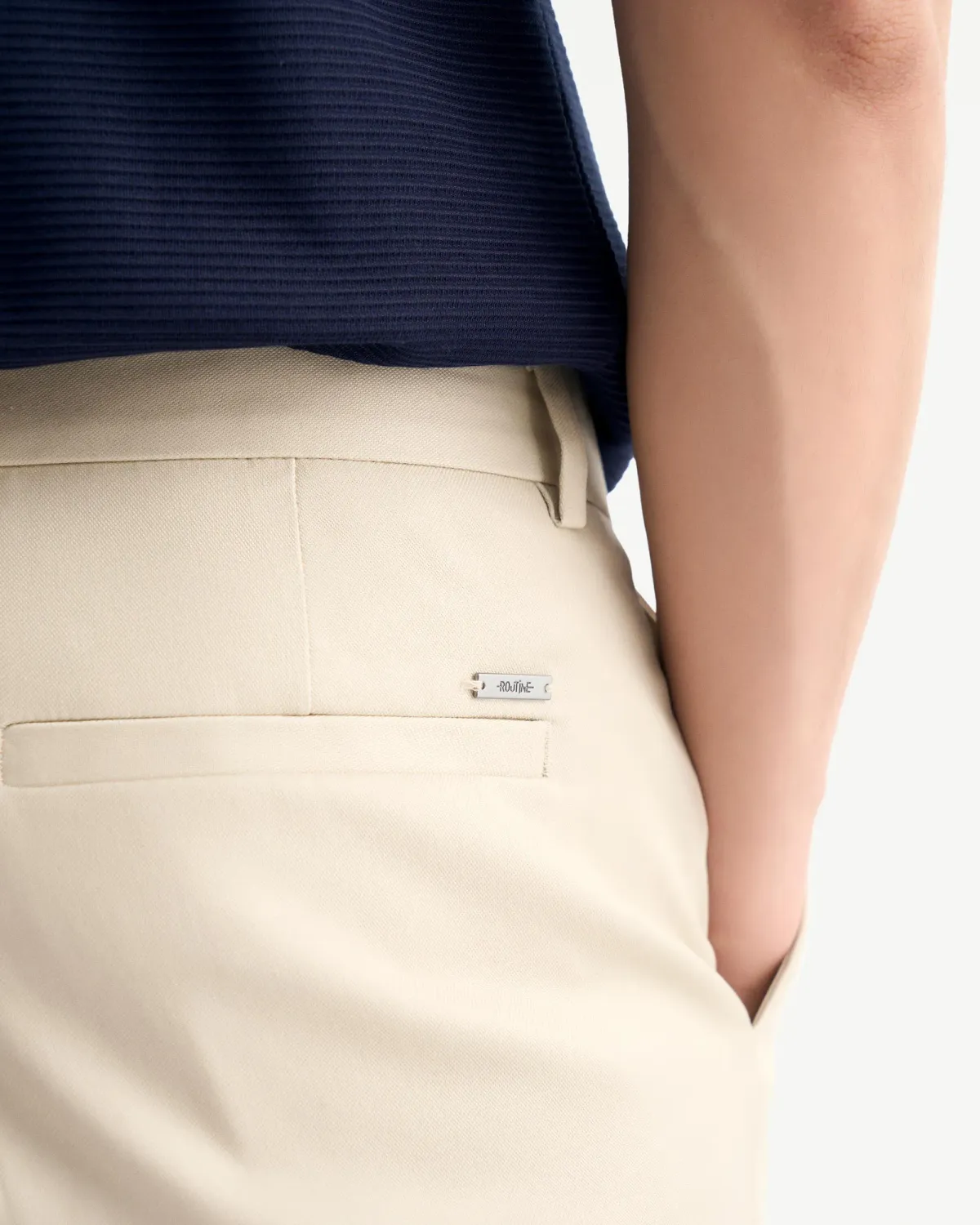 Quần kaki nam đính nhãn kim loại Form Slim cropped - RT 10S25PCA002 | ROUTINE CÀ MAU Đặc điểm nổi bật Form : Slim cropped Fabric : Cotton Spandex Gender: Nam Collection: Essential 25 Sản