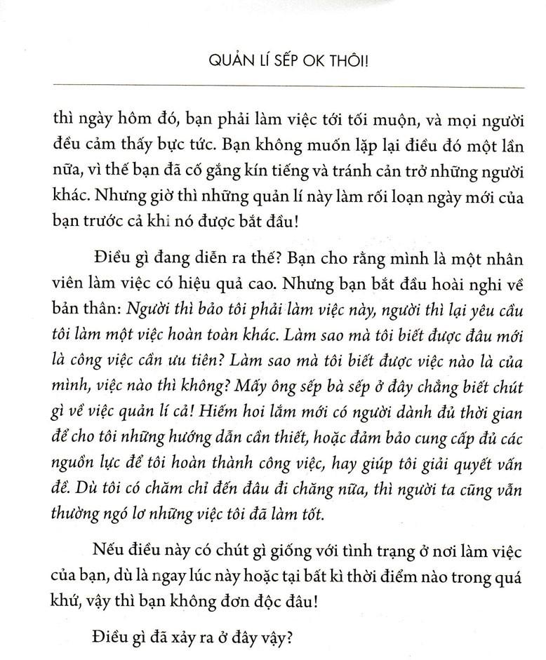 Do đâu mà bạn rơi vào những tình cảnh trên? Có lẽ là do bạn chưa biết cách "quản lý sếp". Nghe thật ngược đời, nhưng đáng để thử! Hãy mạnh mẽ lên và áp dụng những phương pháp trong cuốn sách này vào thực tế công việc của bạn, rồi bạn sẽ thấy "điều ngược đời" này đem đến cho bạn những điều tuyệt vời đến thế nào.