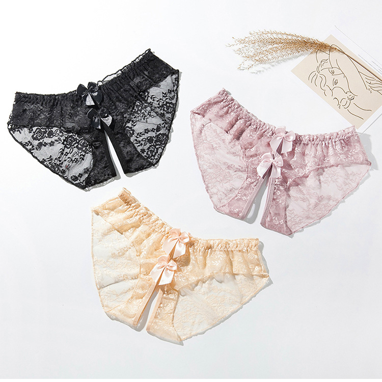 ✨Quần lót ren lọt khe xẻ đáy không đũng đính nơ gợi cảm