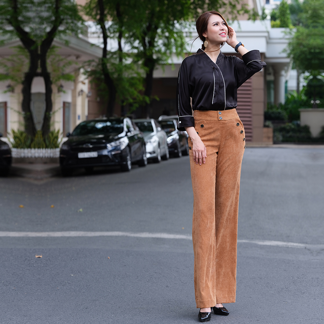 Quần Ống Suông Cúc Phương PAN066 thời trang thiết kế Hity Bước qua tuổi 25, phụ nữ bắt đầu tìm kiếm phong cách thời trang thanh lịch, tao nhã, rồi đến sang trọng, quý phái