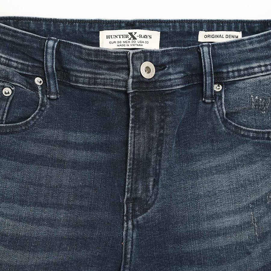 Quần Short Jeans Nam Cao Cấp HUNTER X-RAYS Form Slimfit Thun Mài Sờn Màu Xanh Đậm S36 Đặc điểm nổi bật: Nút được đúc nguyên khối bằng đồng và nổi bật thương hiệu HUNTER X-RAYS