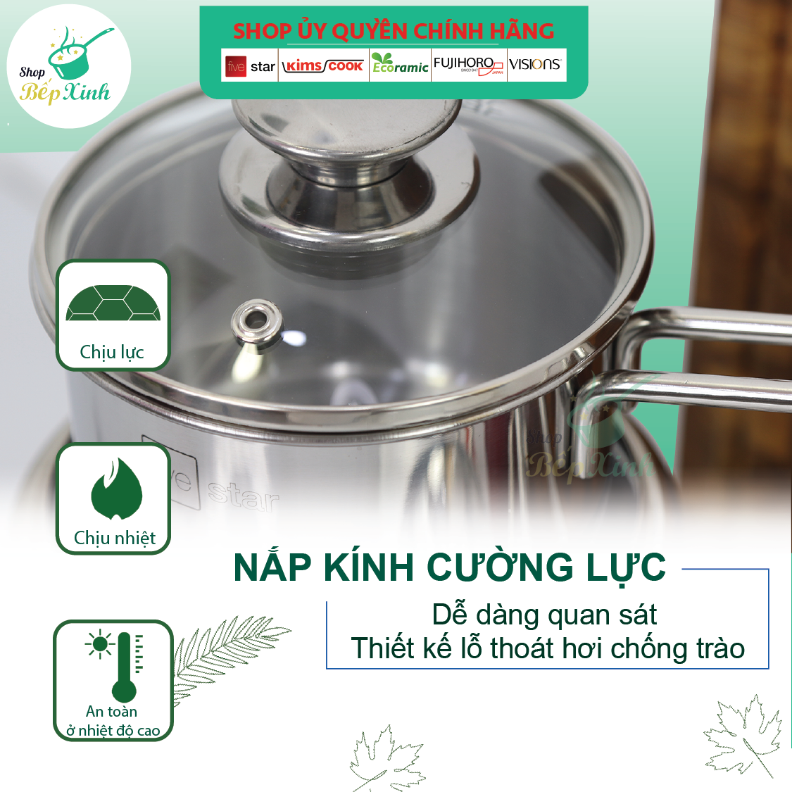 ✨Quánh nấu cháo bột inox 430 Fivestar Standard nắp kính 3 đáy bếp từ ( 12cm / 14cm / 16cm ), tặng 5 muỗng ăn