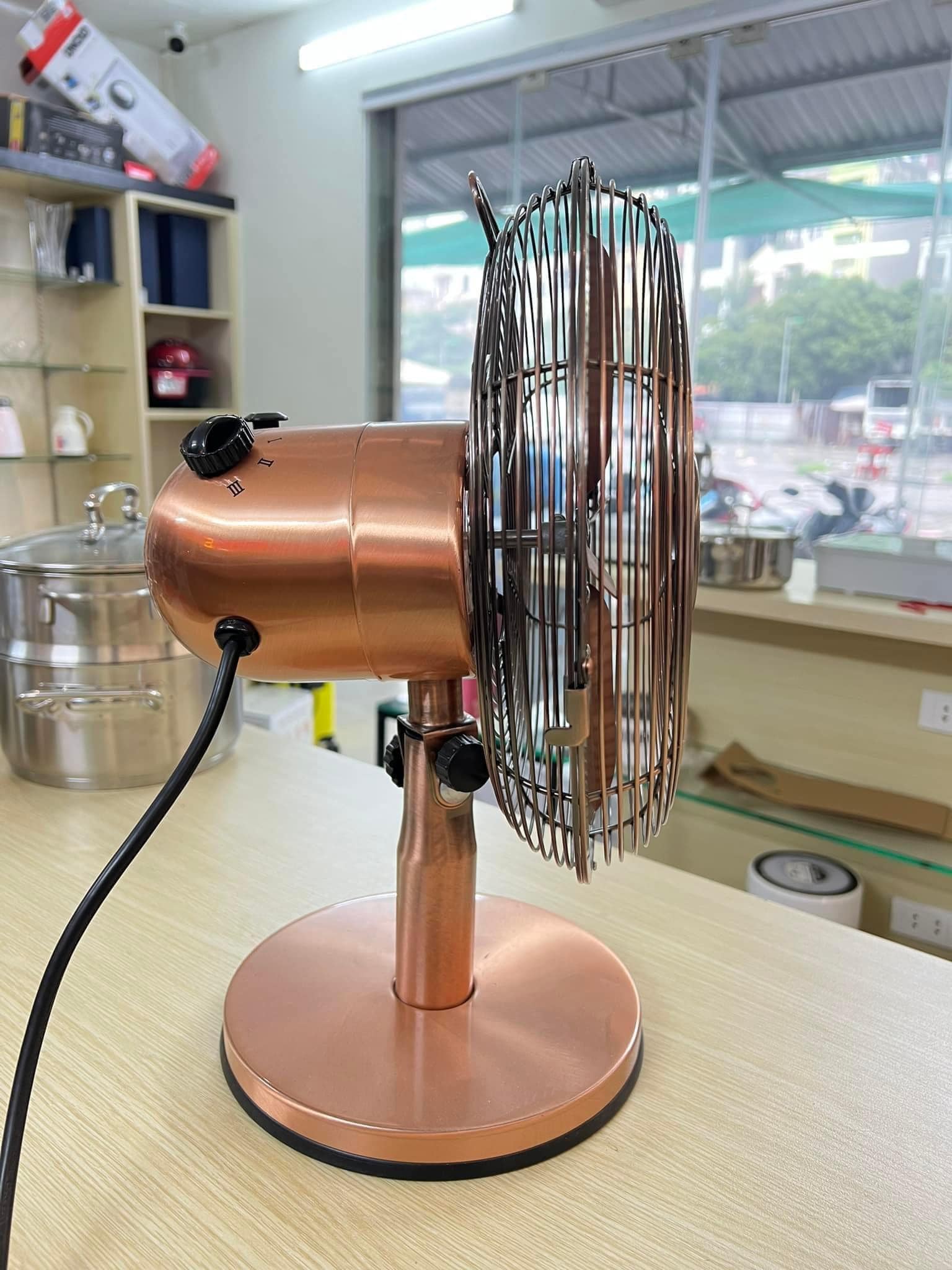 Mua tại TiktokVới những đường nét rõ ràng và vẻ ngoài màu đồng cổ điển, quạt bàn Brandson sẽ nâng tầm trực quan cho bất kỳ môi trường nào. Và nó sẽ mang đến cho bạn một luồng không khí sảng khoái bất cứ khi nào bạn yêu cầu Công suất: 30W Đường kính cánh quạt: 25cm Bật / tắt nguồn Ba mức tốc độ (Cấp 1 - 3) Dao động có thể chuyển đổi 80 ° Góc nghiêng: xấp xỉ 40° (20° lên và 20° xuống) Lưu lượng gió tối đa: 1524 m³/h Thiết kế hiện đại trong giao diện chrome cơ thể hoàn toàn bằng kim loại Độ ồn vừa phải chỉ 50 dB(A) ở mức cao nhất lý tưởng để sử dụng tại nhà hoặc tại văn phòng (bàn làm việc) tay xách 220-240V, 50Hz Kích thước (C x R x L): 39 x 29 x 25 cm