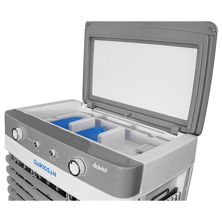 Giới thiệu sản phẩm: Quạt điều hòa dân dụng Daikiosan DM103 - chính hãng Nếu bạn đang tìm kiếm một giải pháp hạ nhiệt nhanh, an toàn, tiết kiệm điện lại có thể diệt khuẩn, khử mùi, lọc bụi cho không gian thì máy làm mát Daikiosan DM103 chính là siêu phẩm dành cho chính bạn và gia đình bạn.  Trong thời điểm không khí ngày càng ô nhiễm, làm sao để có không gian sạch mát cho cả gia đình chính là ưu tiên hàng đầu của các bậc cha mẹ.   Hạ nhiệt tức thì, đập tan nắng nóng Với công nghệ làm mát bằng hơi nước tự nhiên, máy làm máy Daikiosan DM103 cho ra khí mát với nhiệt độ, cân bằng độ ẩm siêu lý tưởng cho gia đình bạn. Sản phẩm cũng không gây sốc nhiệt, khô da như điều hòa. Hiệu suất làm mát mạnh mẽ Máy làm mát Daikiosan DM103 sở hữu công suất 175W, tốc độ gió từ 7,8 - 9,7 m/s giúp máy phân phối không khí mát rộng rãi, đặc biệt hiệu quả trên diện tích lớn từ 45-55m2.   Tốc độ gió linh hoạt Máy làm mát không khí Daikiosan DM103 mang đến trải nghiệm làm mát tối ưu với 3 tốc độ gió đa dạng: cao, trung bình, thấp, giúp bạn linh hoạt điều chỉnh theo nhu cầu và điều kiện môi trường.   Chế độ đảo và điều chỉnh đa chiều Siêu phẩm có chế độ đảo gió 4 chiều giúp phân tán gió ở diện tích rộng hơn, gió được phân tán đồng đều cho không gian làm mát.   Hạ nhiệt ngày nắng nóng bằng nước và đá khô Để dập tắt nắng nóng những ngày cao điểm, máy làm mát Daikiosan DM103 sở hữu thùng chứa nước có dung tích lên đến 72L, cho phép máy làm mát liên tục lên đến 8 giờ, giảm bớt công việc nạp nước liên tục. Máy còn có cảm biến mực nước giúp bảo vệ máy bơm và tăng tuổi thọ cho sản phẩm. Ngoài ra, máy đi kèm với 2 hộp đá khô, giúp làm mát nhanh chóng và hiệu quả hơn, đồng thời tạo ra không khí mát mẻ ngay lập tức. Bạn chỉ cần cho đá khô vào tủ lạnh để đông xong đó đưa ra sử dụng là được.   Diệt khuẩn, khử mùi và lọc bụi cho không khí sạch lành Ứng dụng công nghệ Ag+ duy nhất Được trang bị công nghệ diệt khuẩn Ag+, tiêu diệt đồng thời nhiều loại vi sinh vật và vi khuẩn gây bệnh độc hại. Hạn chế mùi hôi khó chịu trong nước ở thùng chứa, đảm bảo không khí trong lành và an toàn. Lọc bụi công nghệ kép Máy sở hữu lọc bụi 2 lớp giúp cho không khí sạch, trong lành hơn cho gia đình bạn   Độ ồn thấp Với mức độ ồn dao động từ 55-68 dB, Máy làm mát không khí Daikiosan DM103 giữ cho không gian sống yên tĩnh và thoải mái, không làm ảnh hưởng đến sự thoải mái của bạn.   Linh phụ kiện bền bỉ, cùng bạn vượt thời gian Máy làm mát không khí Daikiosan DM103 hoạt động bền bỉ nhờ trang bị nhiều linh kiện chất lượng:   Motor nguyên chất, có độ bền gấp 1.5 - 2 lần so với các loại thông thường.  Thân máy làm bằng nhựa cao cấp an toàn cho sức khỏe. Bo mạch phủ lớp chống oxy hóa, chống ẩm, giúp tăng thêm tuổi thọ cho sản phẩm. Máy có thêm tính năng tự động ngắt bơm khi hết nước, giúp hạn chế các sự cố cháy nổ và đảm bảo tuổi thọ của bơm.