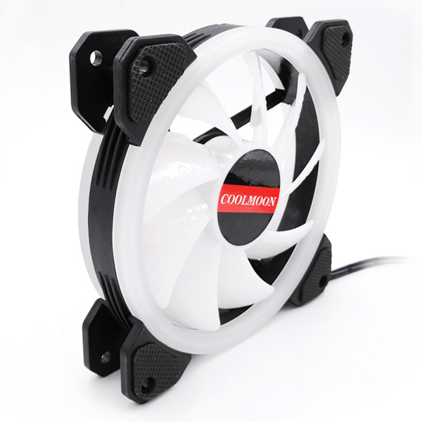 Quạt Led RGB Coolmoon Quạt Led RGB 12cm đa chế độ Đồng bộ hub coolmoon Rotating speed 1400 rpm Ultra quite chất liêu nhựa ABS Service life 35000h Hỗ trợ điều chỉnh tốc độ và
