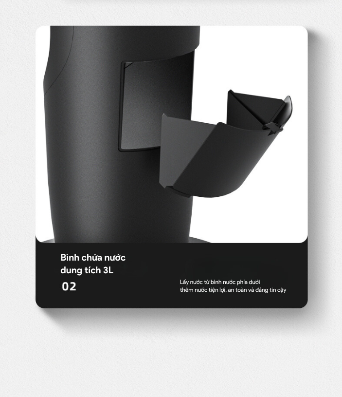 - Tích hợp tay cầm dễ di chuyển. 15.Màu sắc: Titanium 16.. Dây nguồn có phích cắm đã được cấp chứng nhận VDE của Đức và Châu Âu (Dây nguồn có phích cắm đã được cấp chứng nhận VDE, phù hợp với tiêu chuẩn môi trường RoHS và REACH). 17.. Nguồn điện: 220V-240V ~ AC 50/60Hz